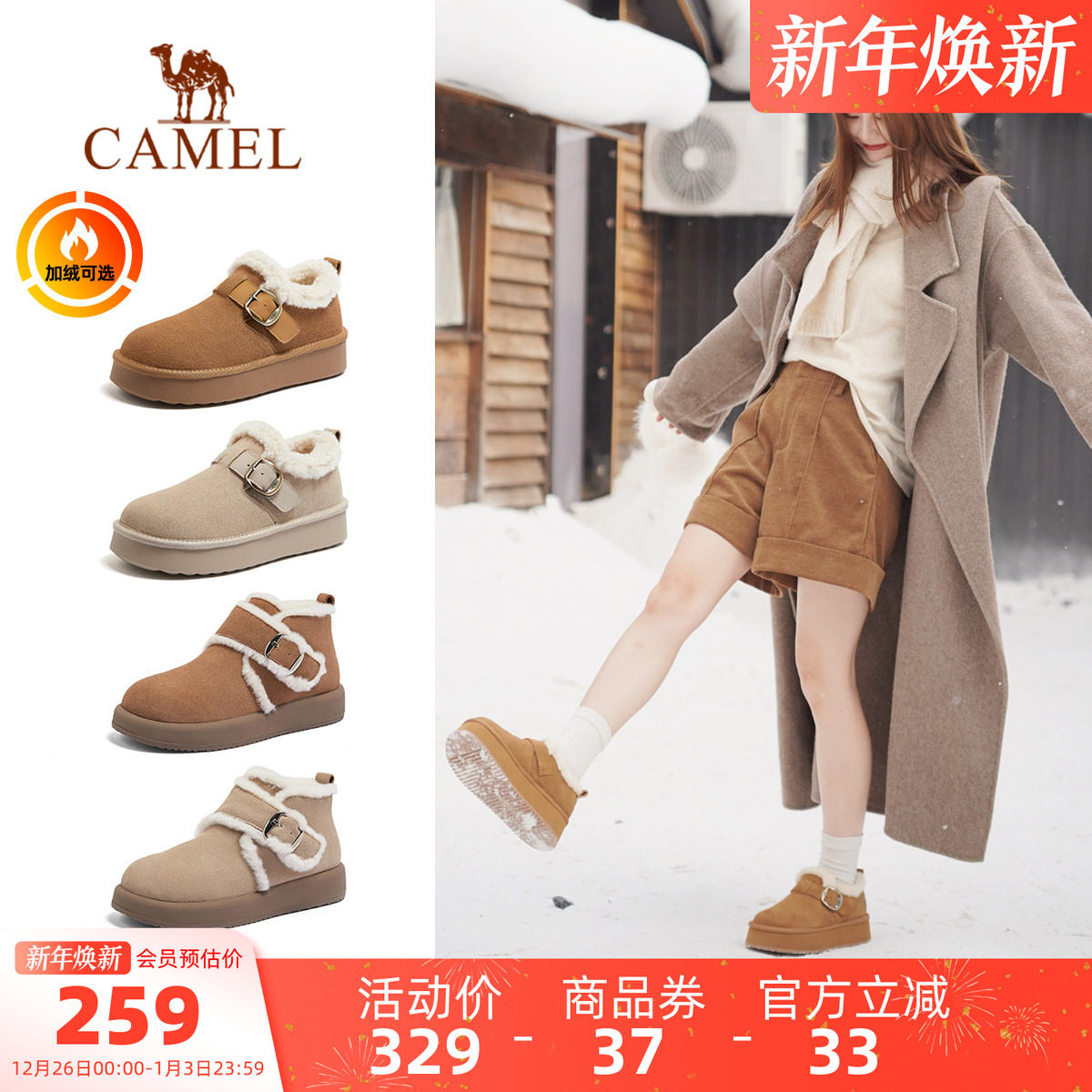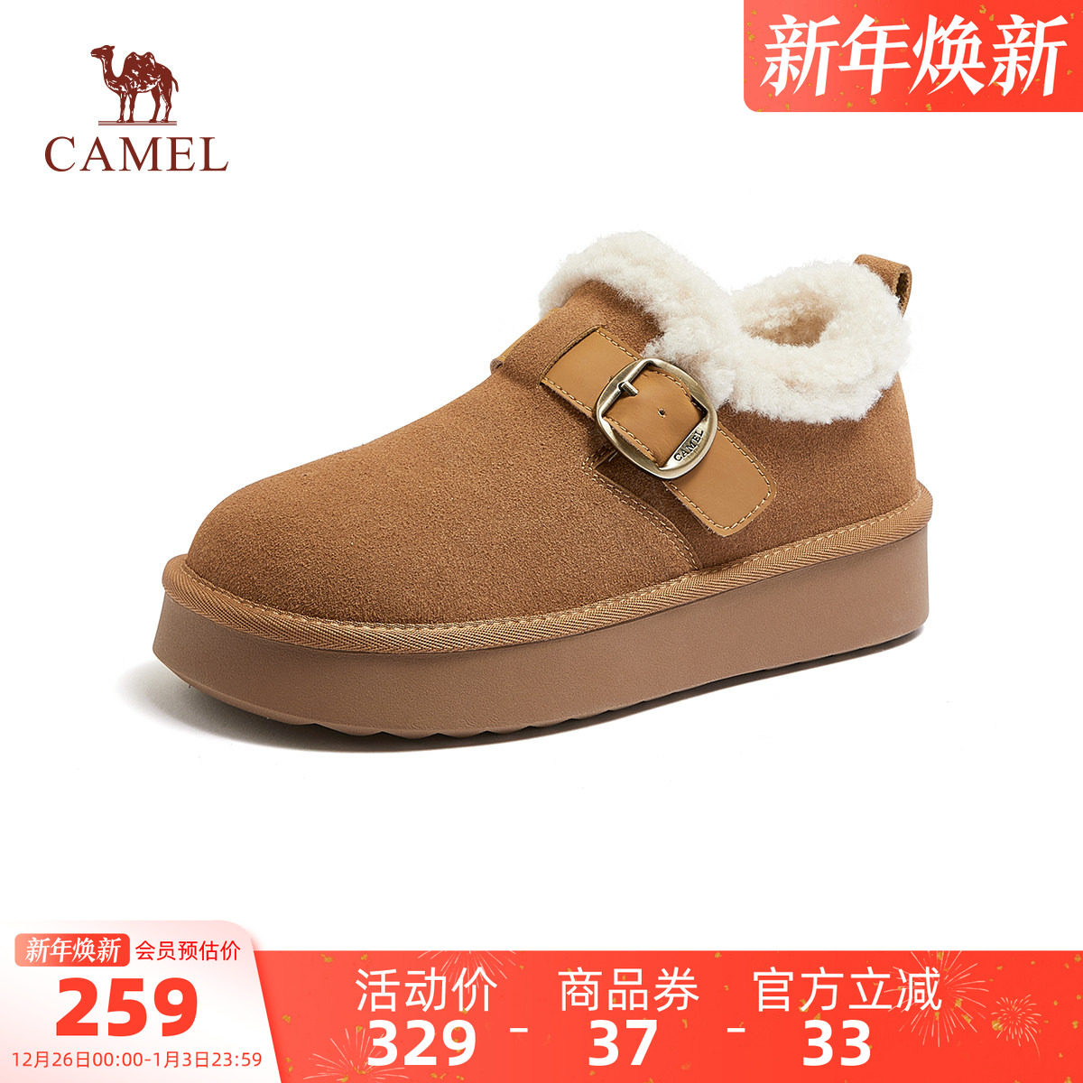 骆驼女鞋2025冬季新款加绒保暖棉鞋女款毛毛鞋厚底休闲勃肯雪地靴