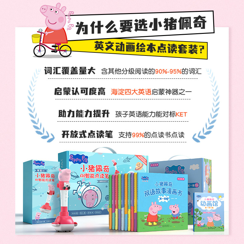 进口原版小猪佩奇台词本英文绘原版音频动画片儿童点读笔英语早教启蒙