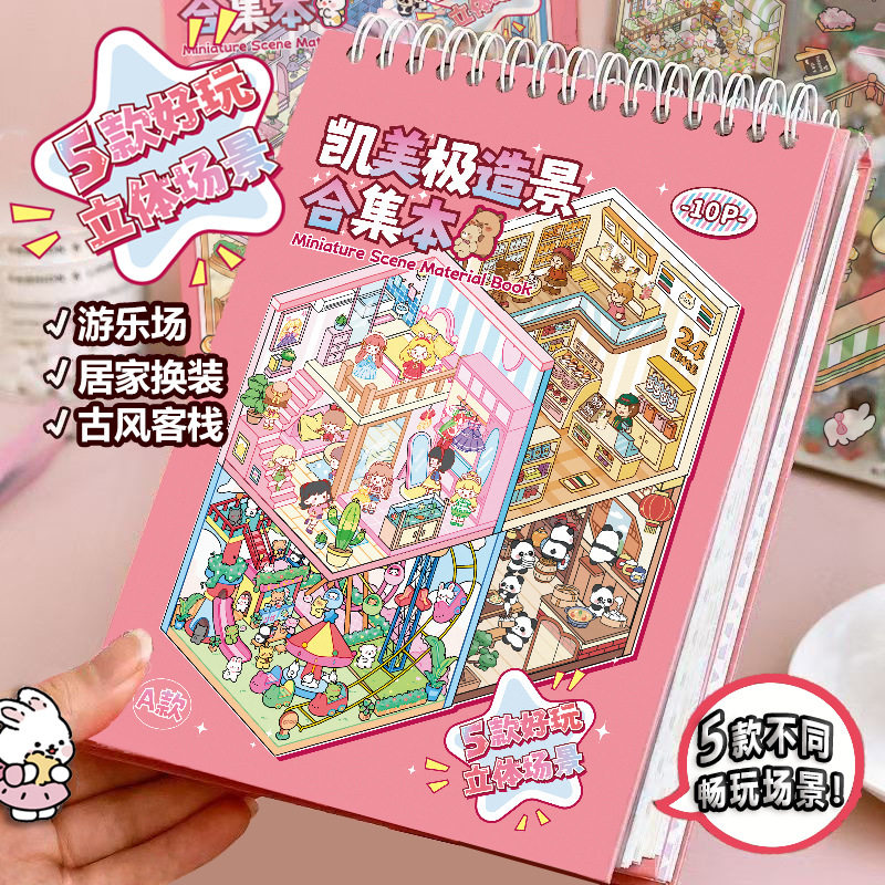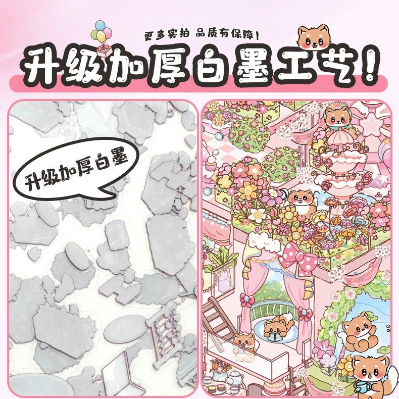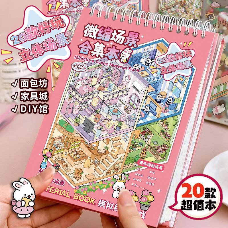 贴纸造景儿童玩具微缩场景合集本玩具女孩儿童微缩场景3D造景贴纸立体小屋小麻薯益智玩具diy手账创意贴画