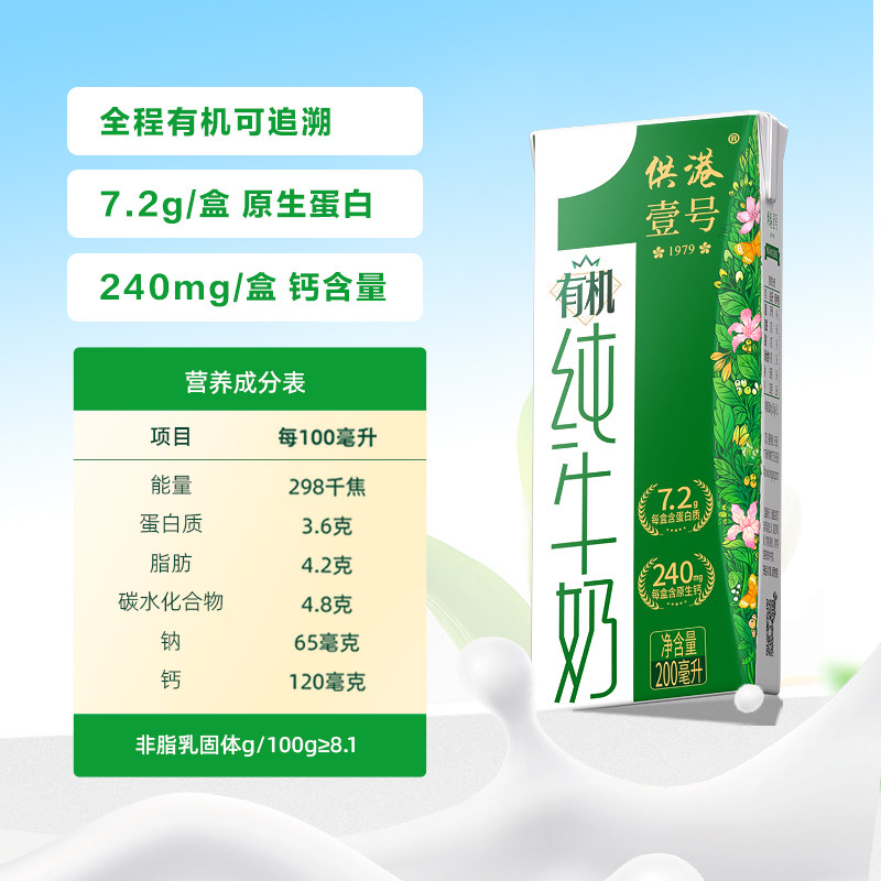 供港壹号牛奶有机纯奶200mlx12盒营养早餐蛋白质纯牛奶送礼牛奶