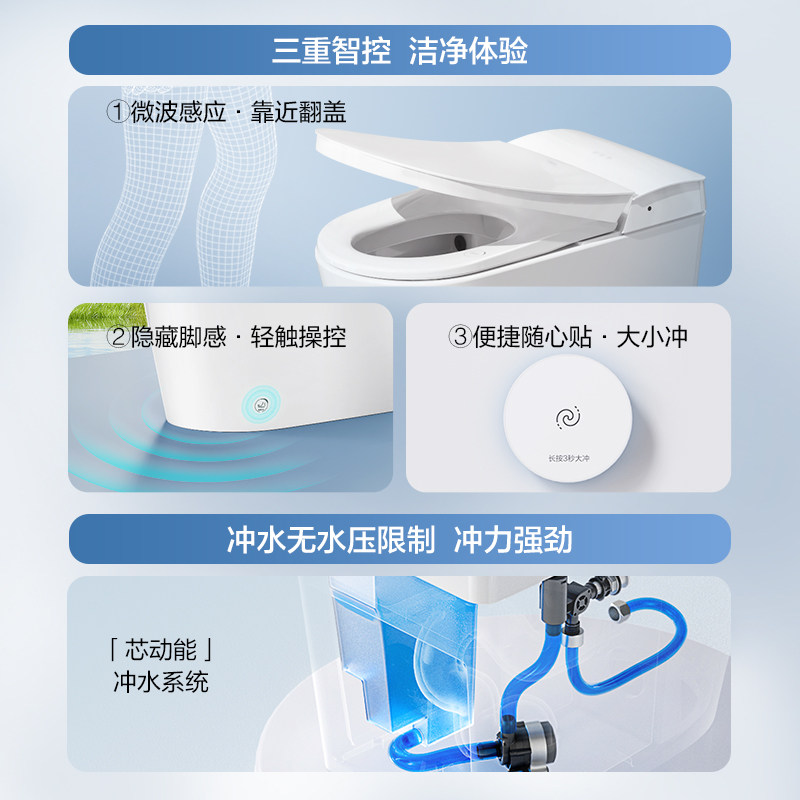 恒洁智能马桶全自动一体式坐便器小户型零压冲感应翻盖H31pro