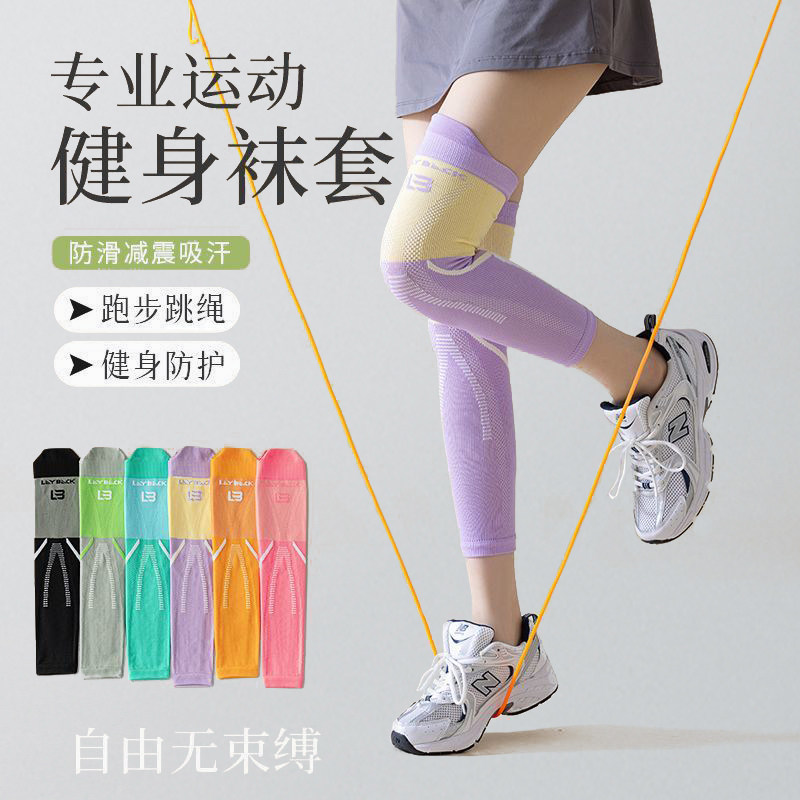 护膝腿套女2026运动压力专业跳绳跑步瑜伽过膝袜压缩紫色健身粉色