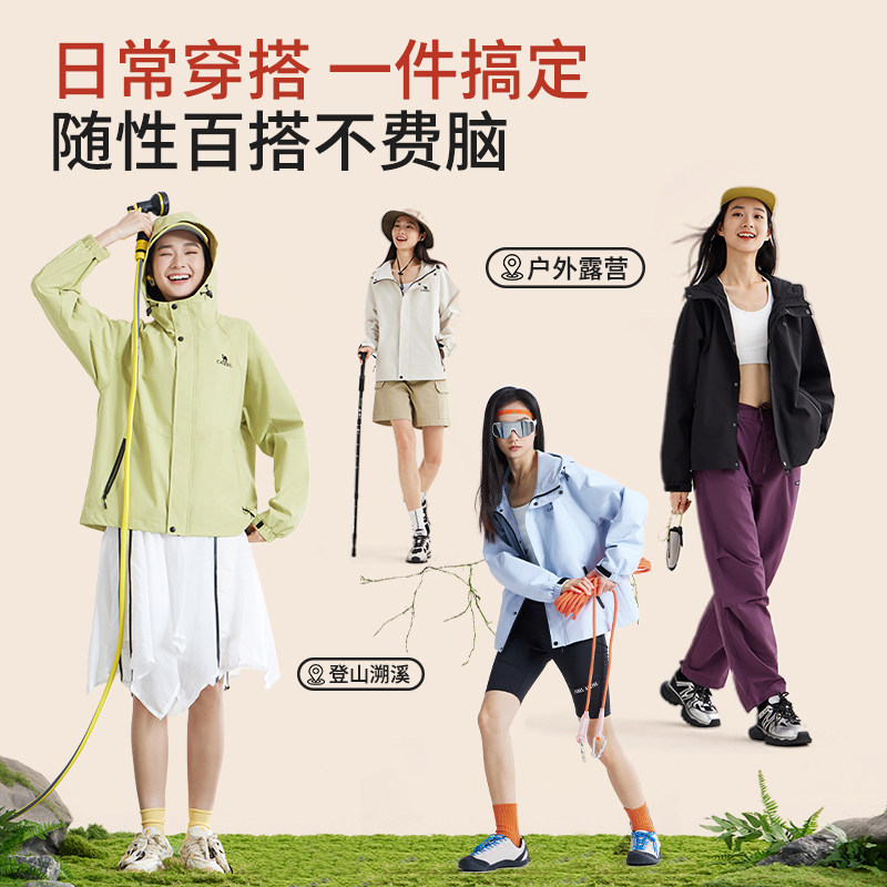 骆驼山海2.0夹克女装2025新款春夏三防户外登山服休闲连帽外套男