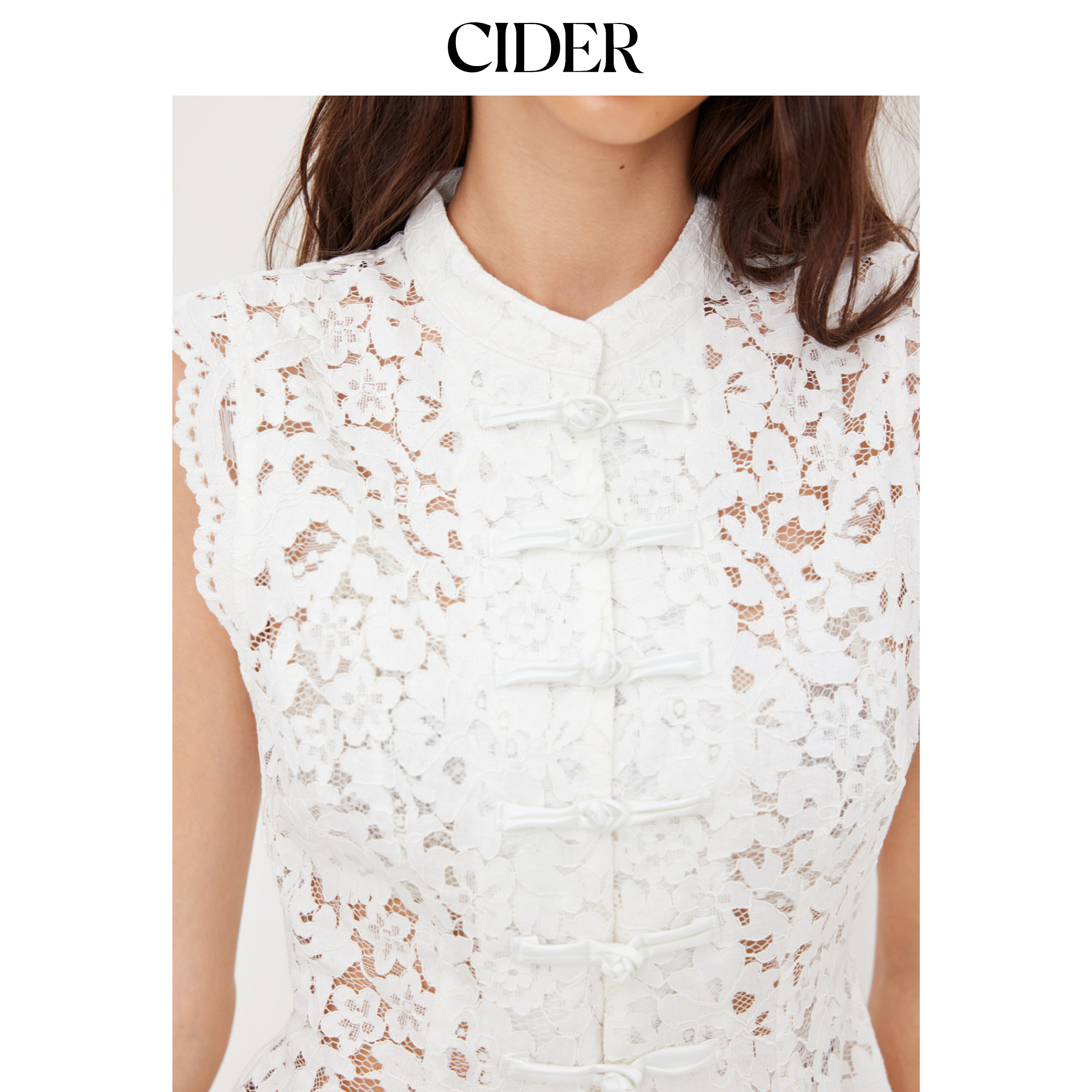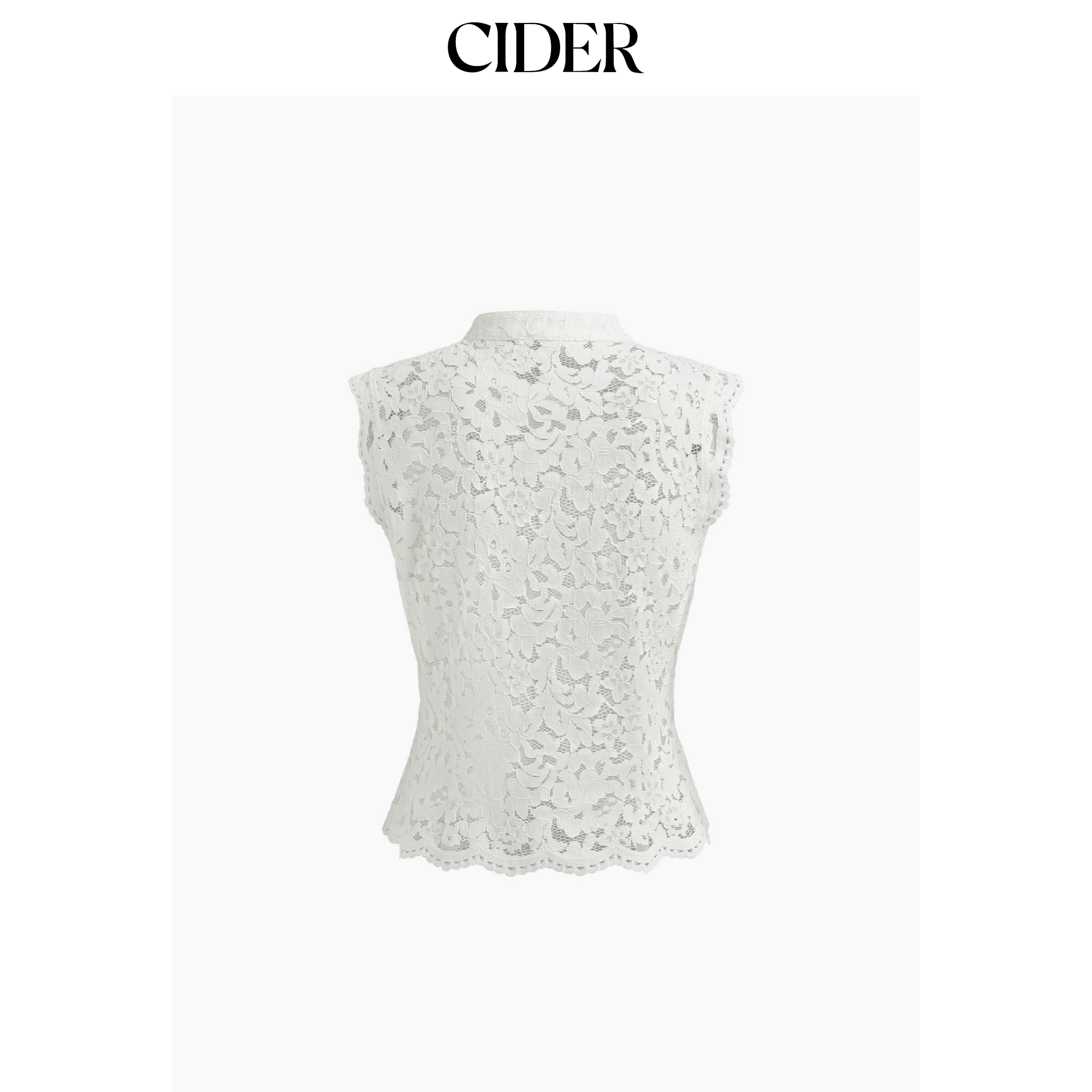 【明星同款】CIDER蕾丝衫翻领镂空开衩背心盘扣无袖上衣114497602