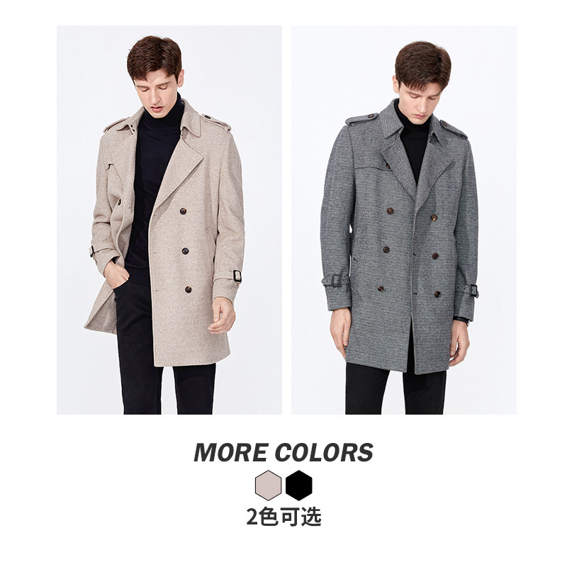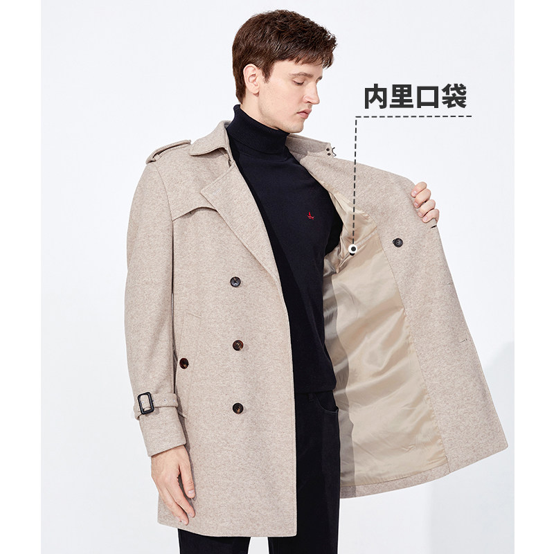 【100%绵羊毛】报喜鸟柴斯特斜纹中长款男大衣堑壕双面呢短款外套