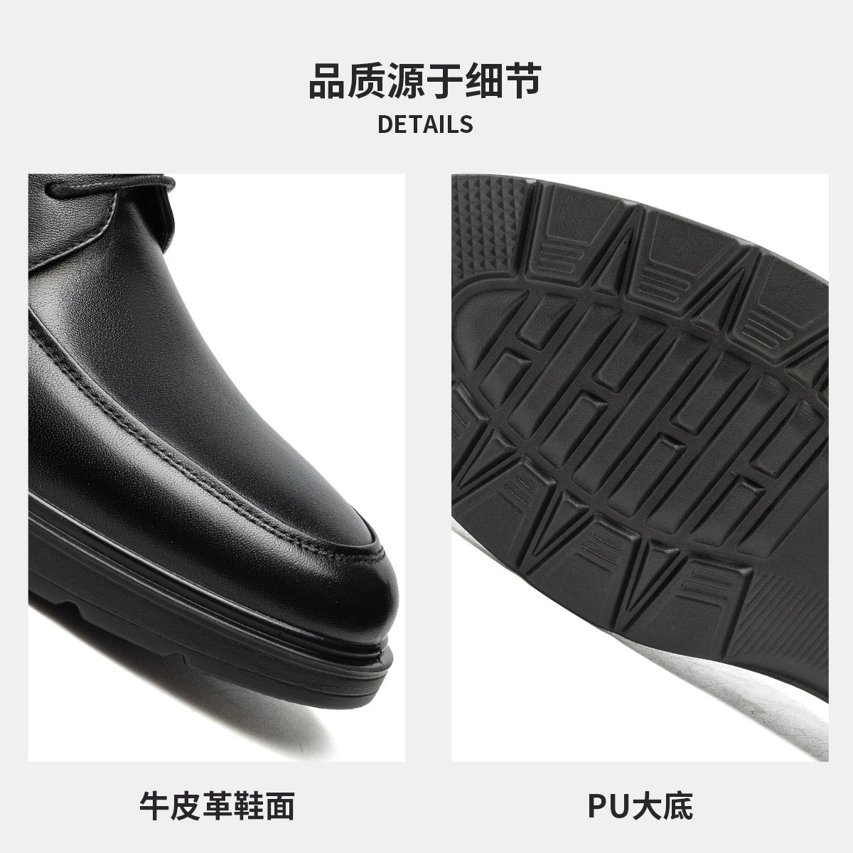 骆驼2025冬季舒适休闲加绒皮鞋男结婚新郎正装商务真皮增高德比鞋