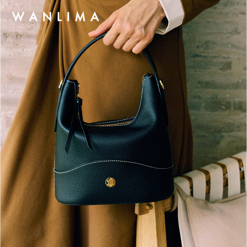 万里马幸运系列水桶包女腋下设计师斜挎极简手提菜篮子包真皮单肩