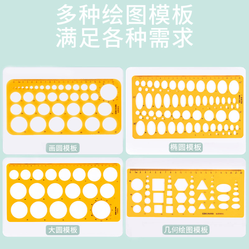 多功能画圆尺几何模板绘图尺大小圆形洞洞镂空服装珠宝设计制图尺学生正方三角椭圆多边形数学画尺手抄报模版