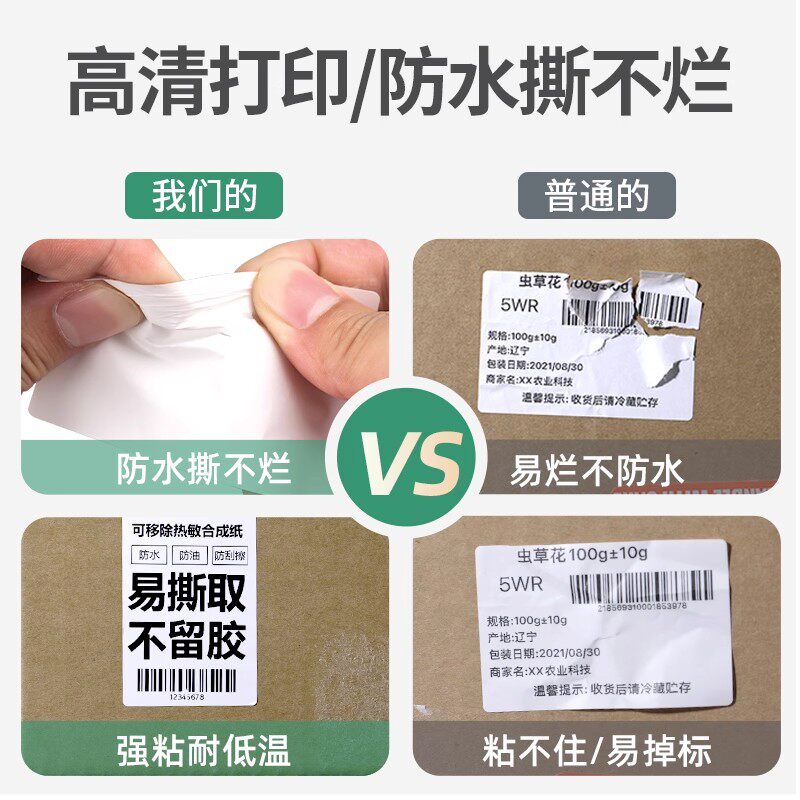 可移除热敏标签纸60*40 50 70 80 100不干胶防水可移背胶易撕取条码打印家具板材玻璃贴纸撕不烂