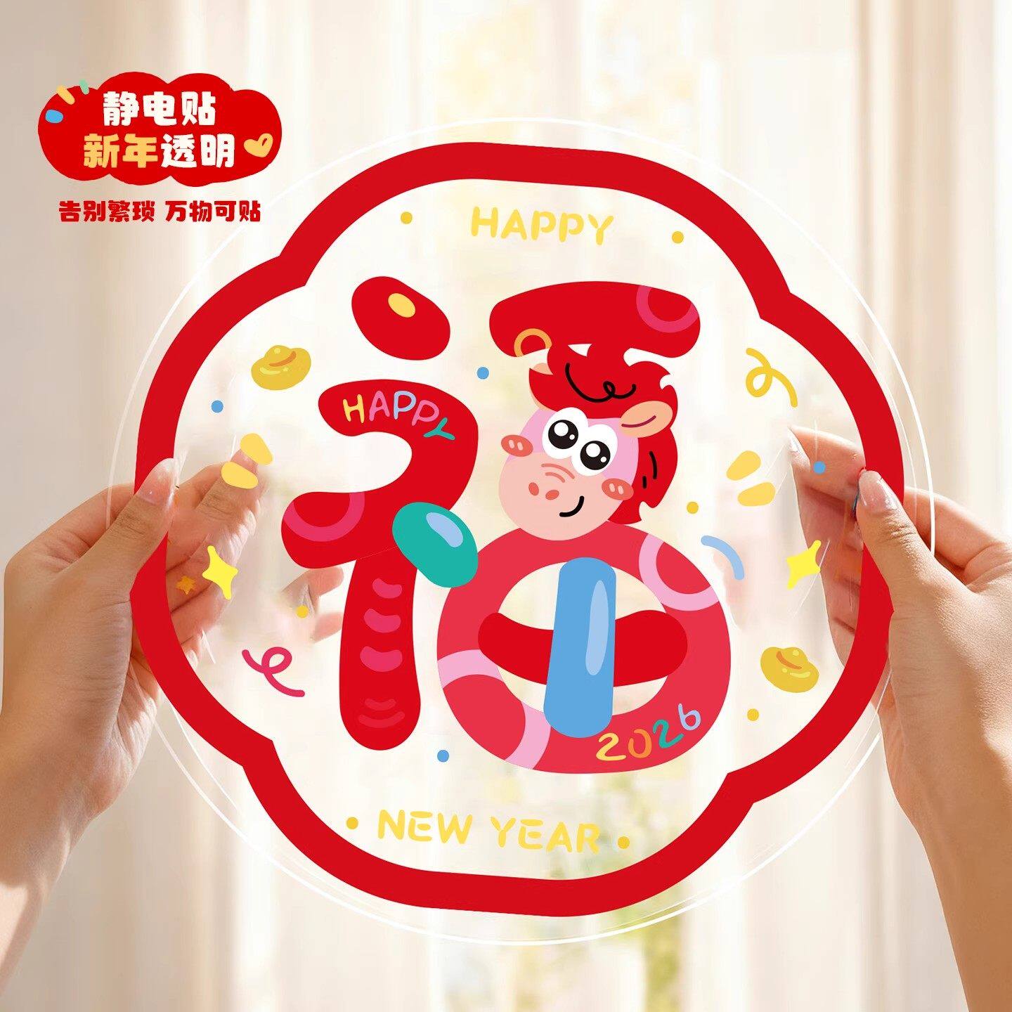 2026新年福字装饰氛围春节静电贴新款窗花贴纸马年窗贴玻璃贴过年