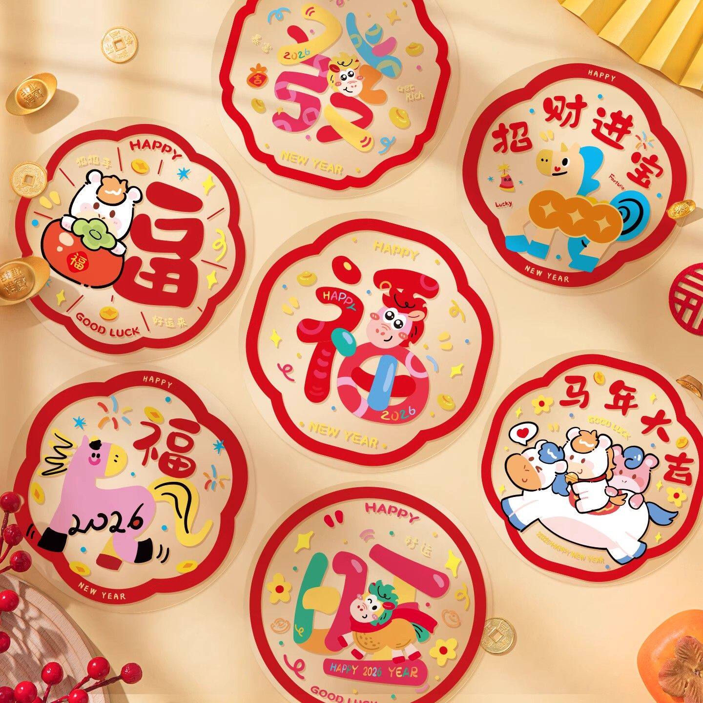 2026新年快乐春节橱窗玻璃贴新年马年装饰用品静电贴过年玻璃贴纸