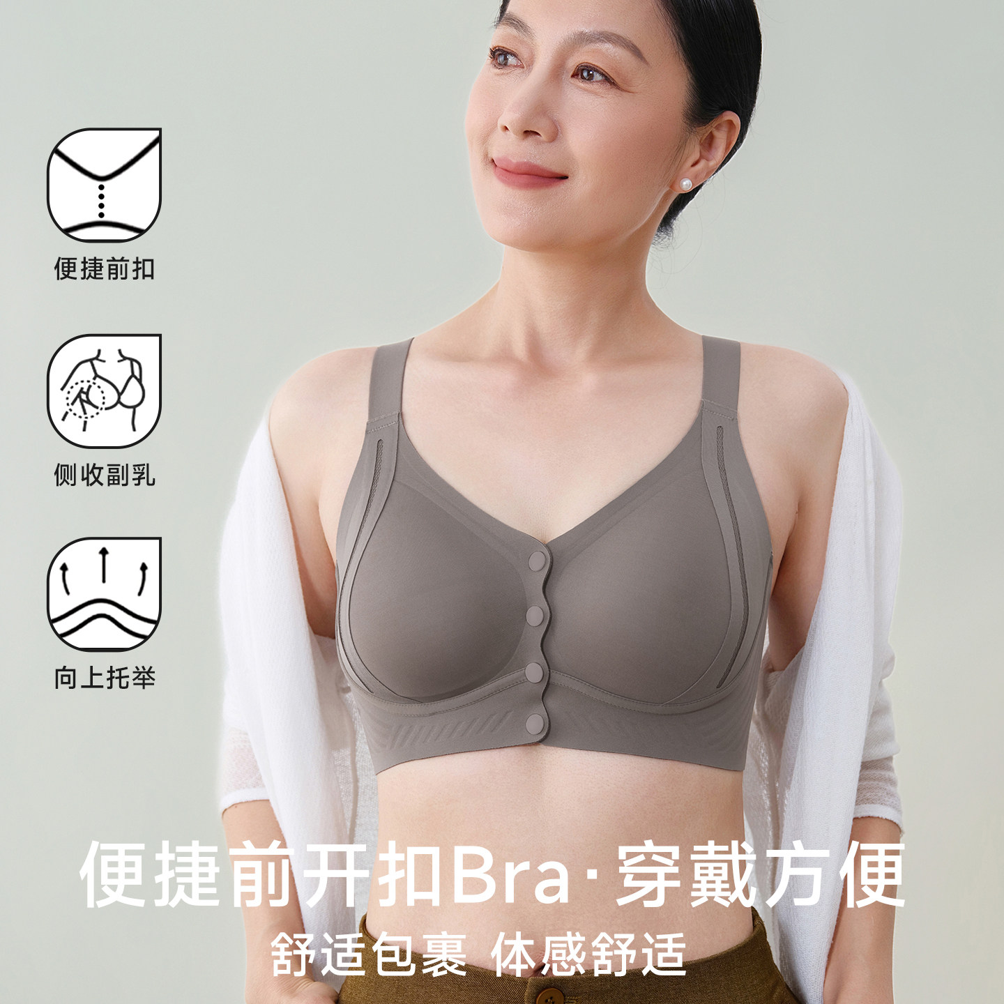 古今前扣妈妈内衣女无钢圈聚拢上托防下垂无痕舒适大码背心文胸罩