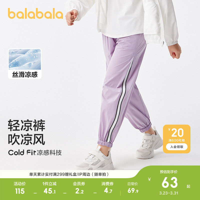 巴拉巴拉童装男童休闲裤儿童裤子夏季中大童女童运动长裤撞色潮酷
