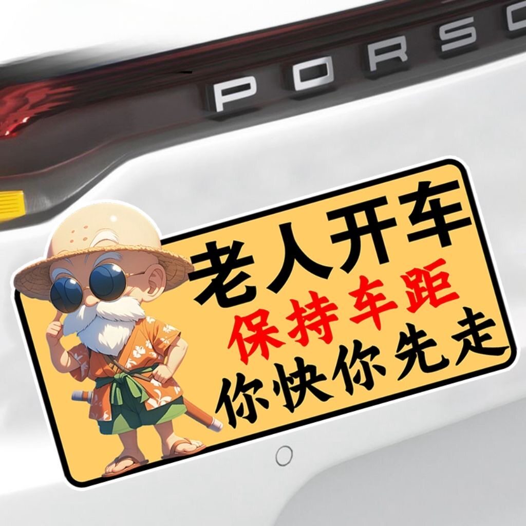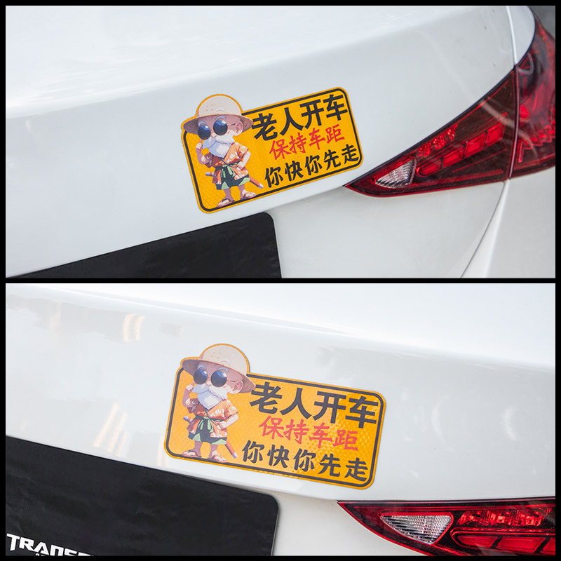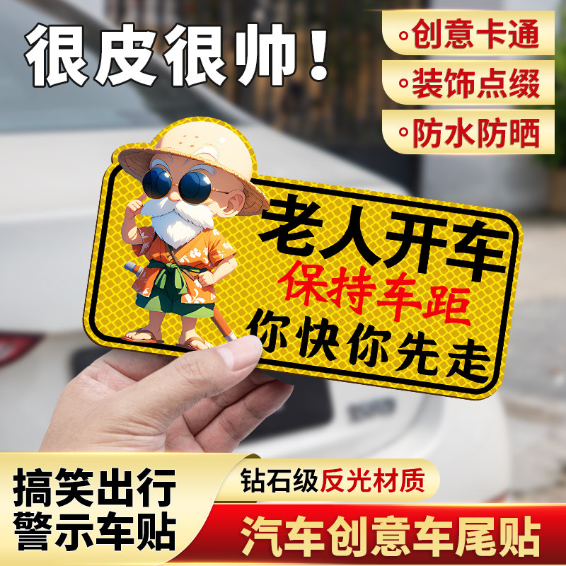 老人开车保持车距汽车贴纸夜间警示反光贴卡通文字搞笑贴车贴防水