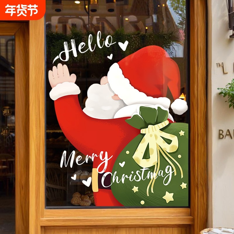 圣诞节玻璃装饰布置玻璃贴纸新年腰线场景贴画静电贴氛围元旦橱窗