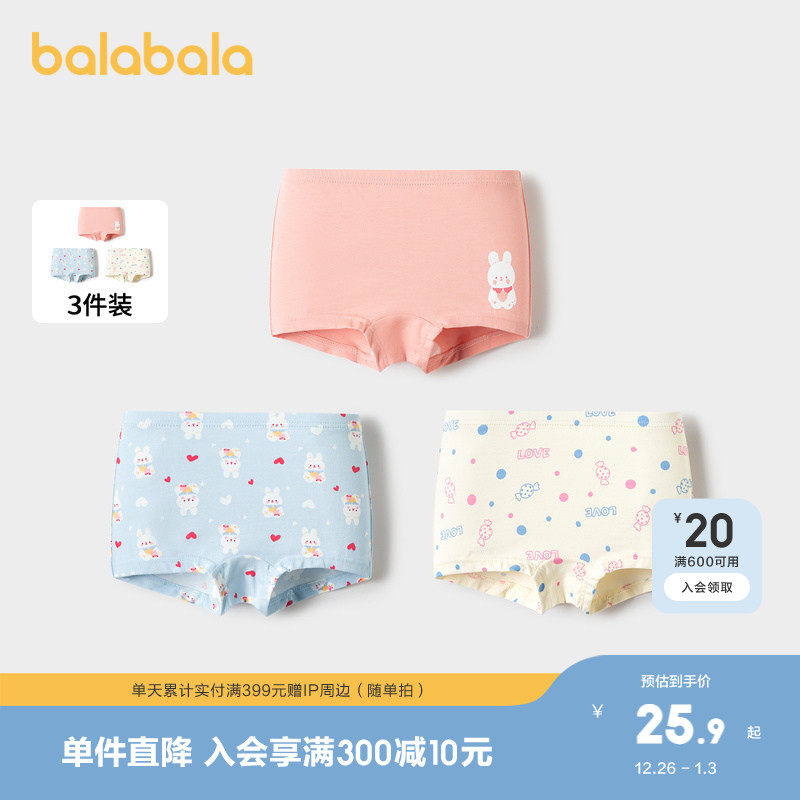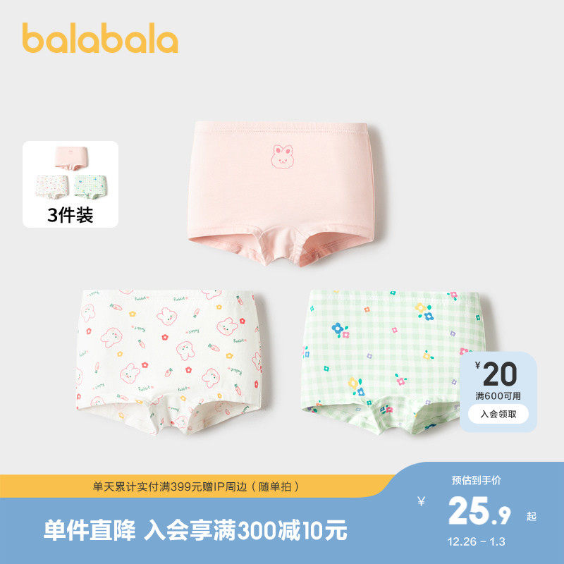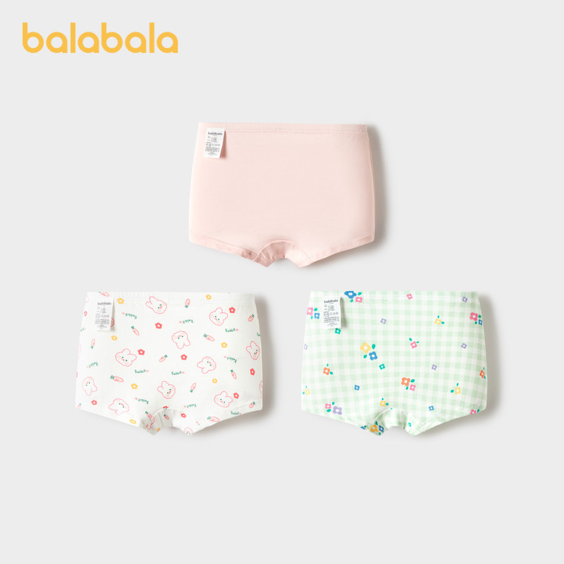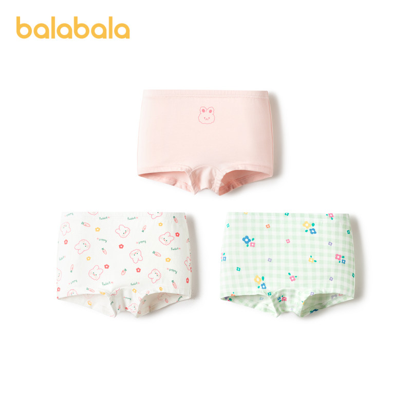 巴拉巴拉女童内裤棉平角秋季新款儿童四角短裤亲肤萌不夹PP三条装