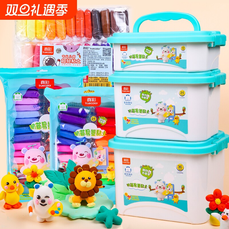 真彩无毒超轻粘土补充装3C认证12色24色36色儿童幼儿园橡皮泥安全手工制作diy材料工具黏土学生太空彩泥玩具