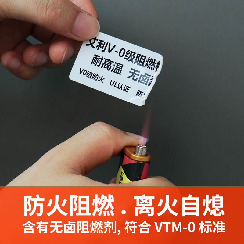 艾利v0级阻燃pet标签纸防火UL认证不干胶条码纸耐高温汽车手机发热线路板电池消防航空工业级打印纸定制印刷