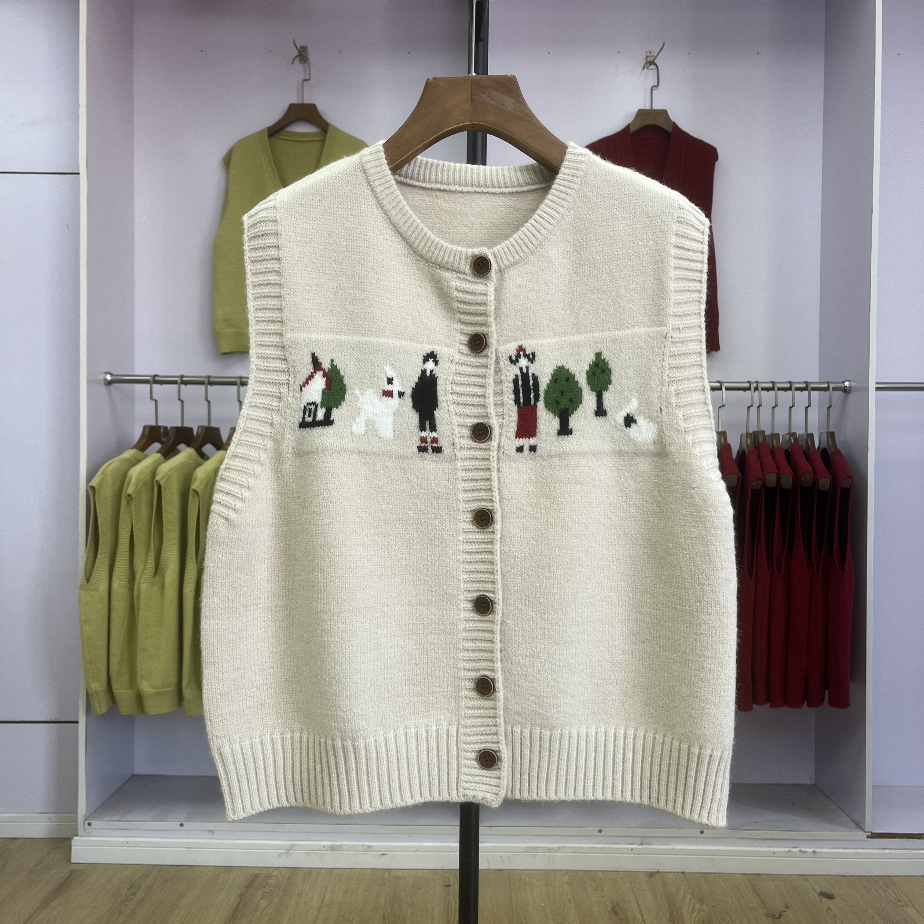 清仓【601-650】V领针织开衫马甲气质百搭减龄宽松无袖毛衣背心