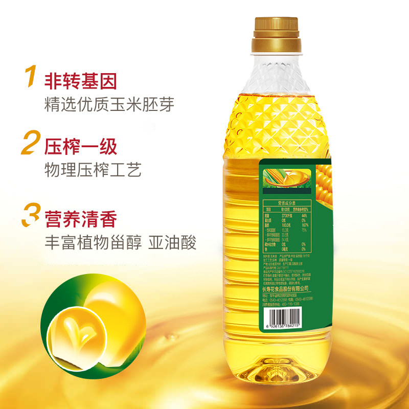 长寿花压榨玉米油900ml非转基因物理压榨家用烘焙食用植物油