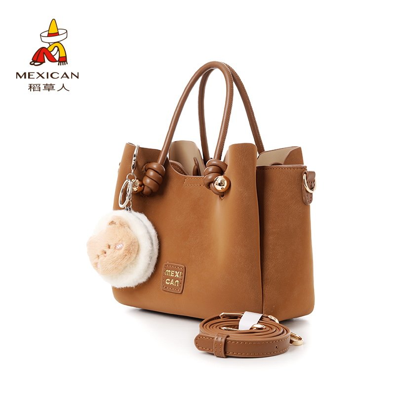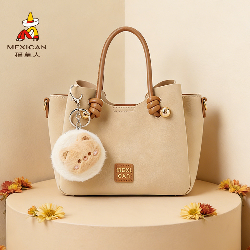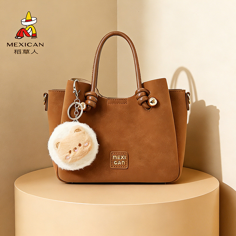 稻草人包包冬季新款斜挎包水桶包质感轻奢通勤手提包时尚单肩女包
