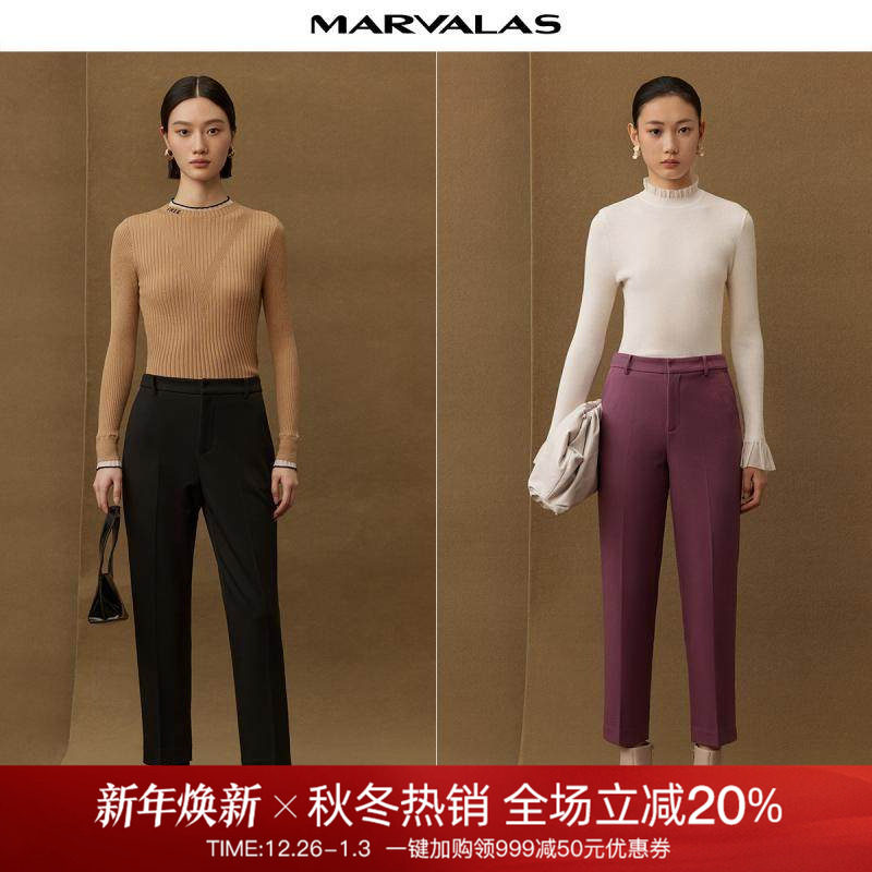 曼德诗纯色高腰铅笔裤2025秋冬新款简约百搭精纺OL风休闲九分长裤
