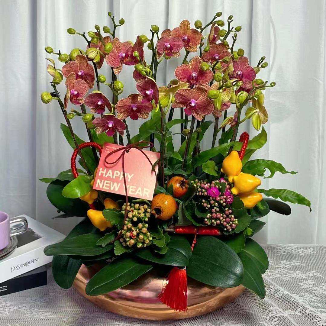 40cm口径电镀盆铁艺蝴蝶兰花盆花器金属银柳盆器仿真花新中式摆件
