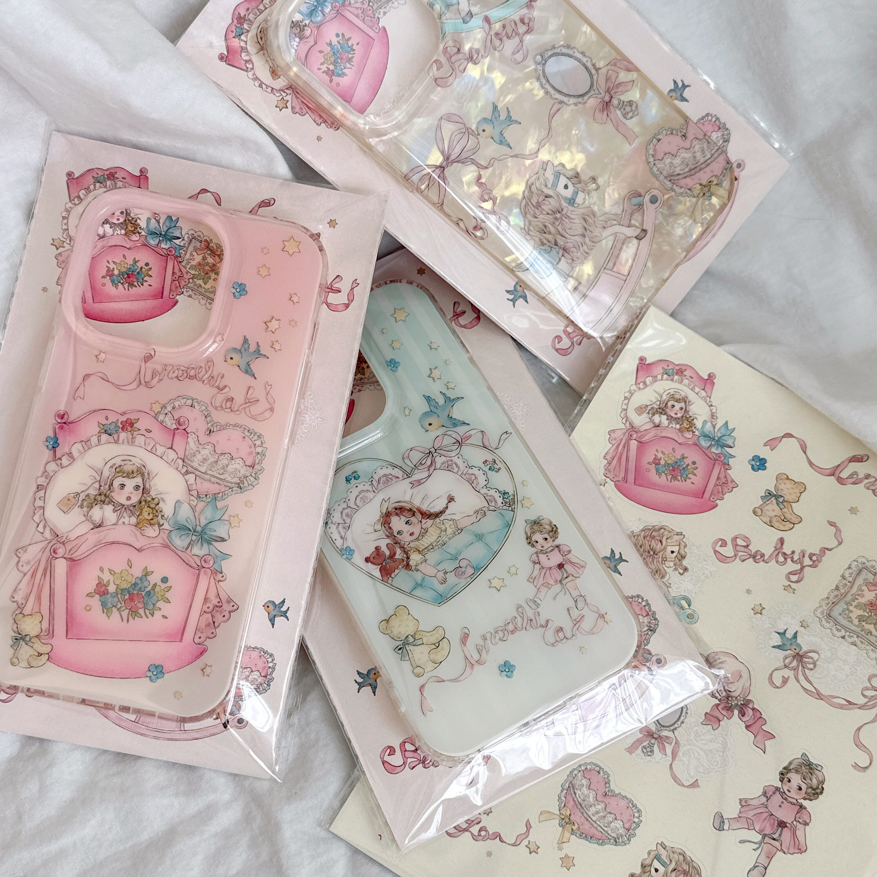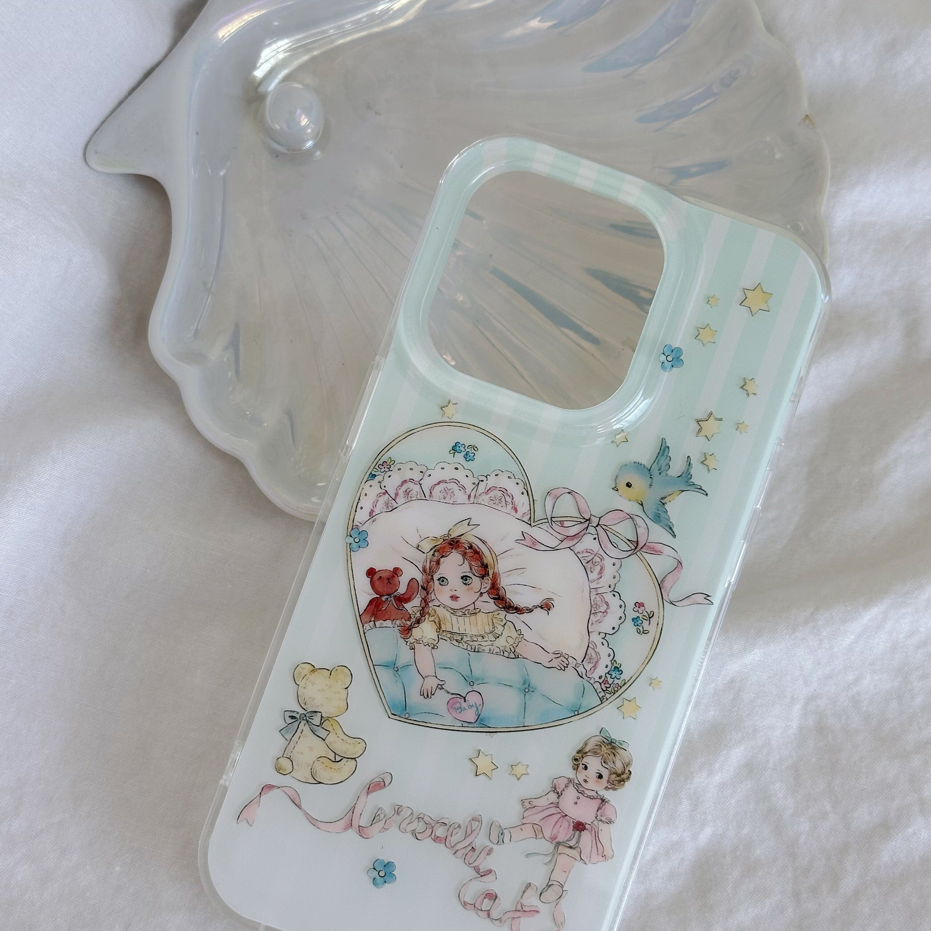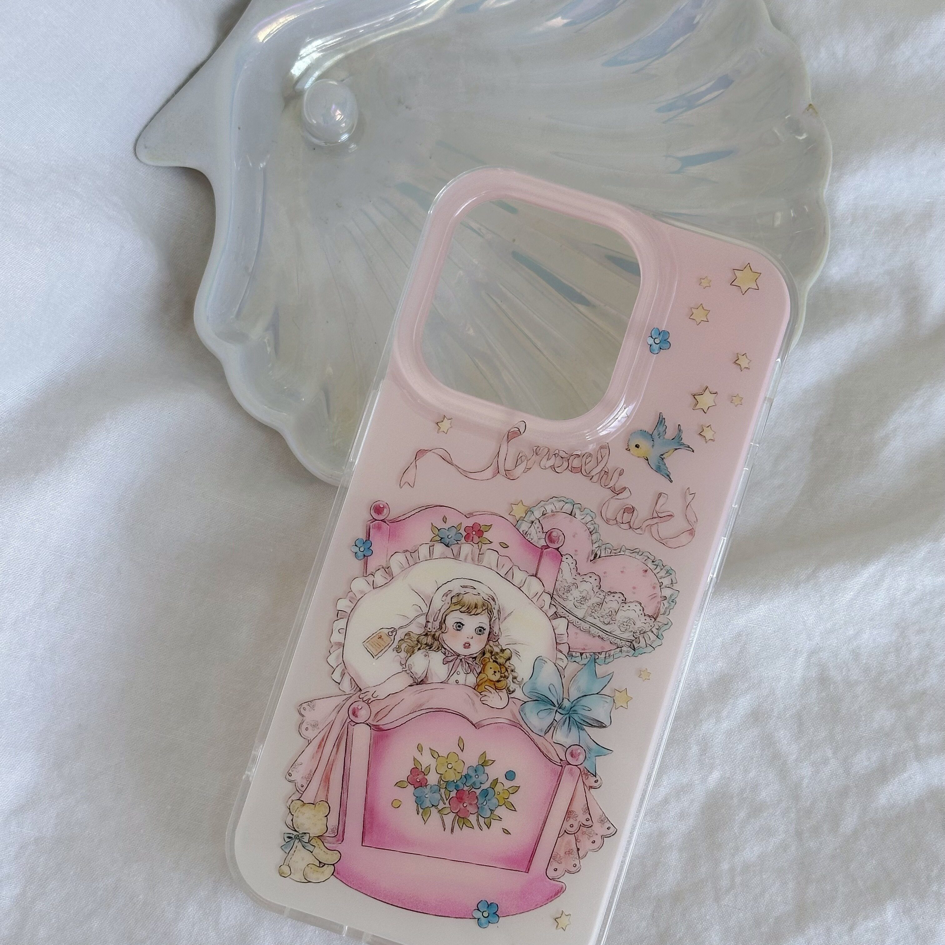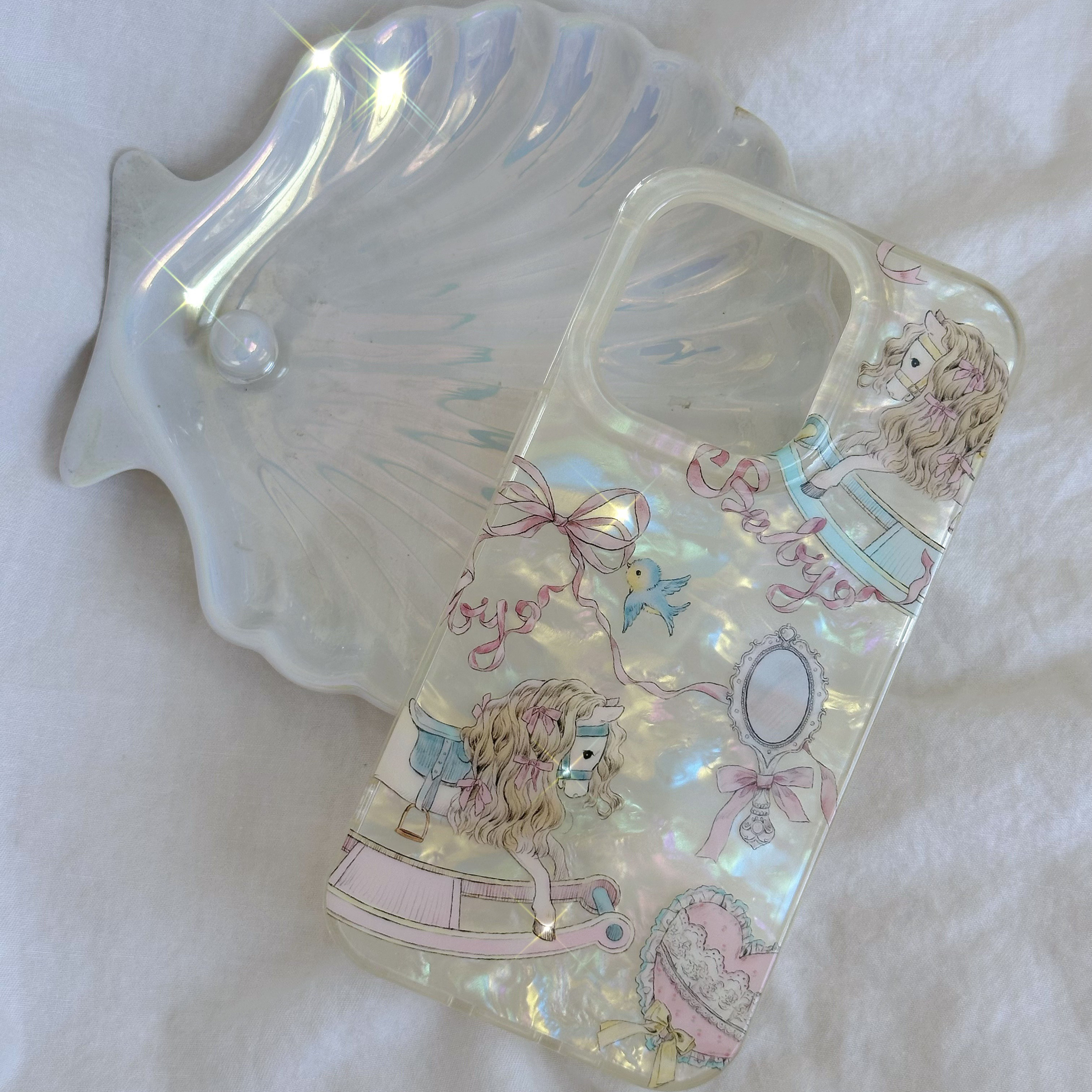 原创·夏日贝壳摇摇马手机壳imd材质双层软壳 古董娃娃粉蓝色