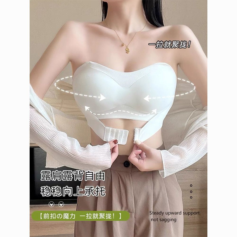 无肩带内衣隐形文胸小胸聚拢防滑抹胸少女前排扣美背裹胸少女文胸