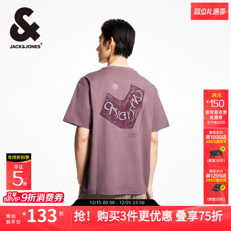杰克琼斯男装2025年秋季新款胶印字母打底衫刺绣短袖男款宽松T恤