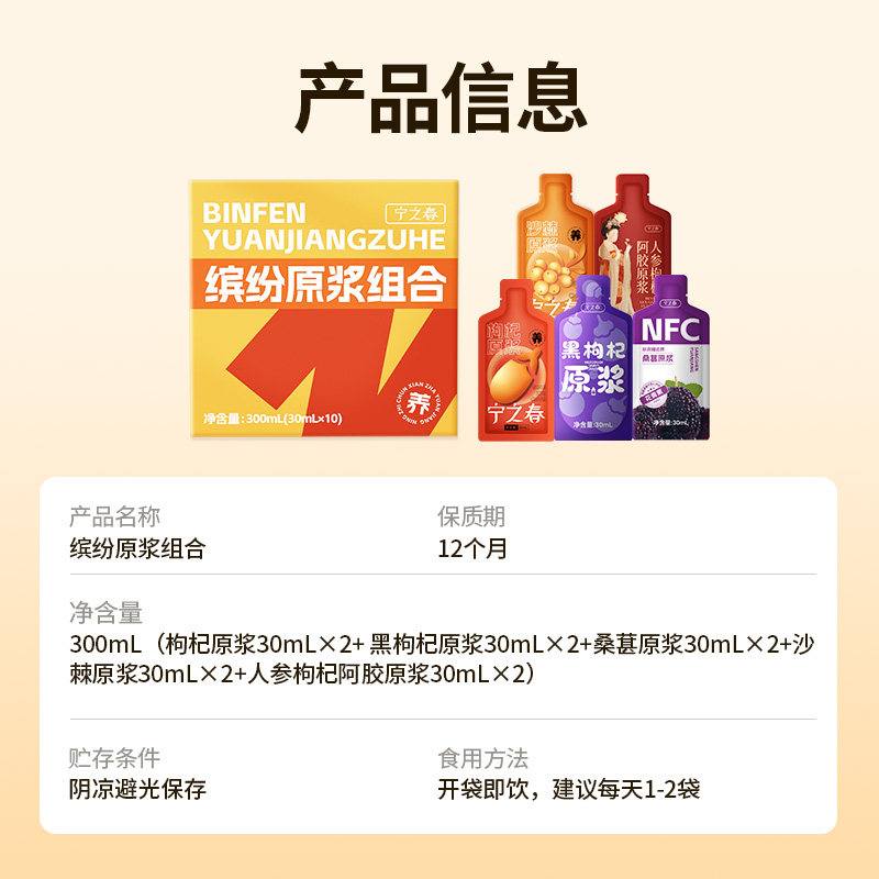 宁之春枸杞原浆300ml沙棘原浆桑葚汁人参原浆鲜枸杞汁官方旗舰店