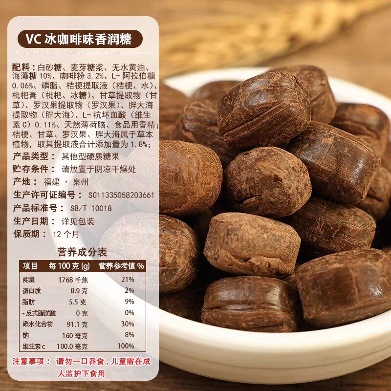 冰黑咖啡香润糖VC清凉薄荷糖果零食散装正品润喉硬糖开车即食提神