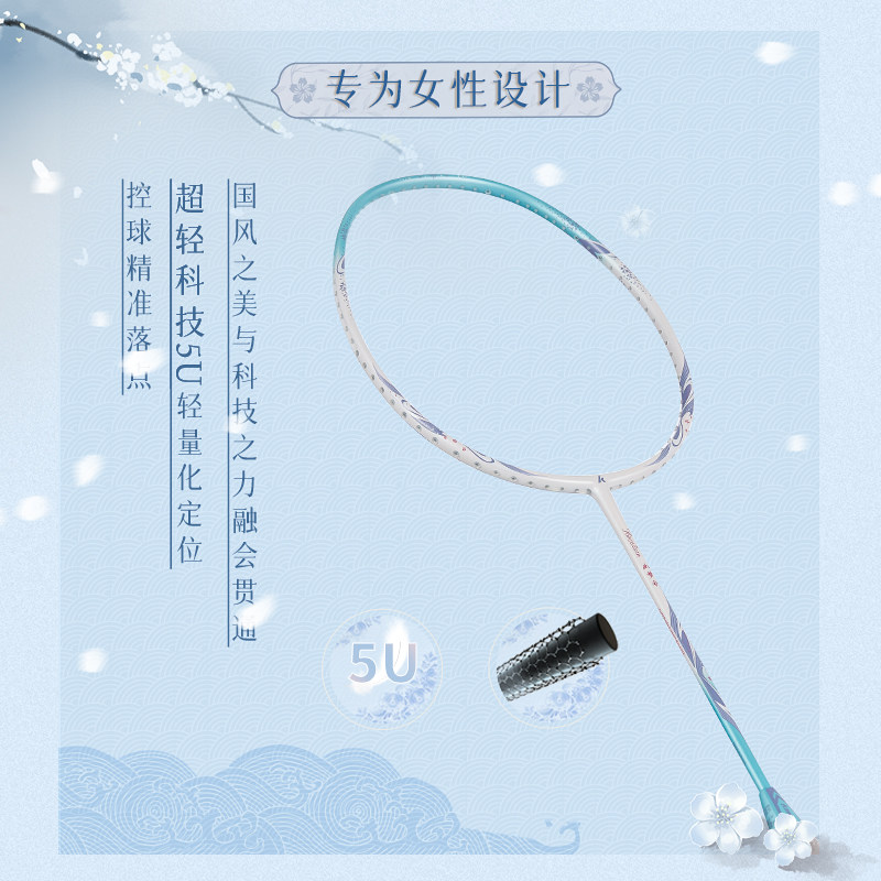 kawasaki川崎青花瓷如梦令女性羽毛球拍全碳素纤维成人单拍超轻5U