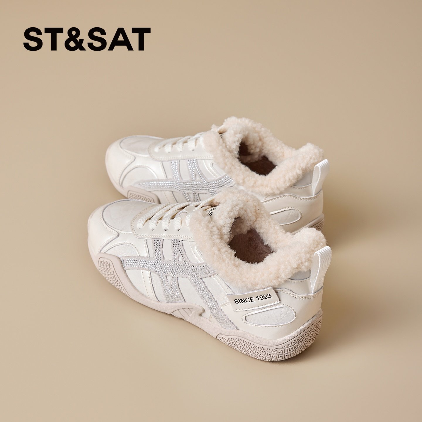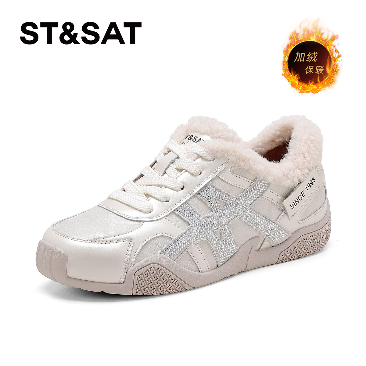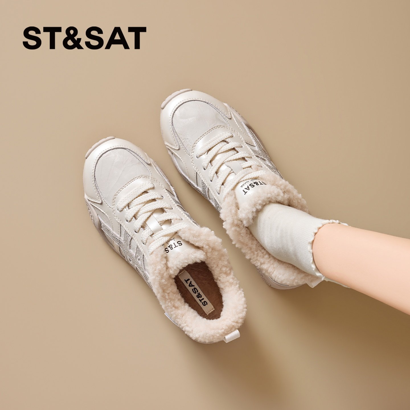 星期六加绒德训鞋女款2025新款冬季厚底保暖阿甘鞋运动毛毛棉鞋子