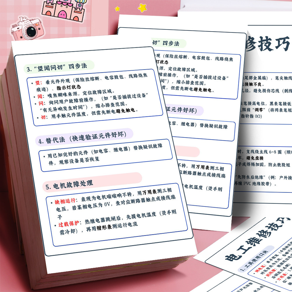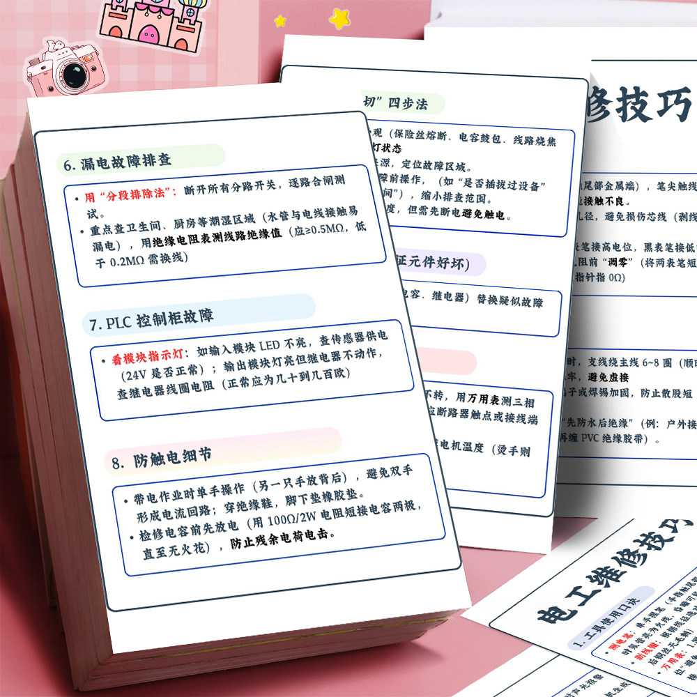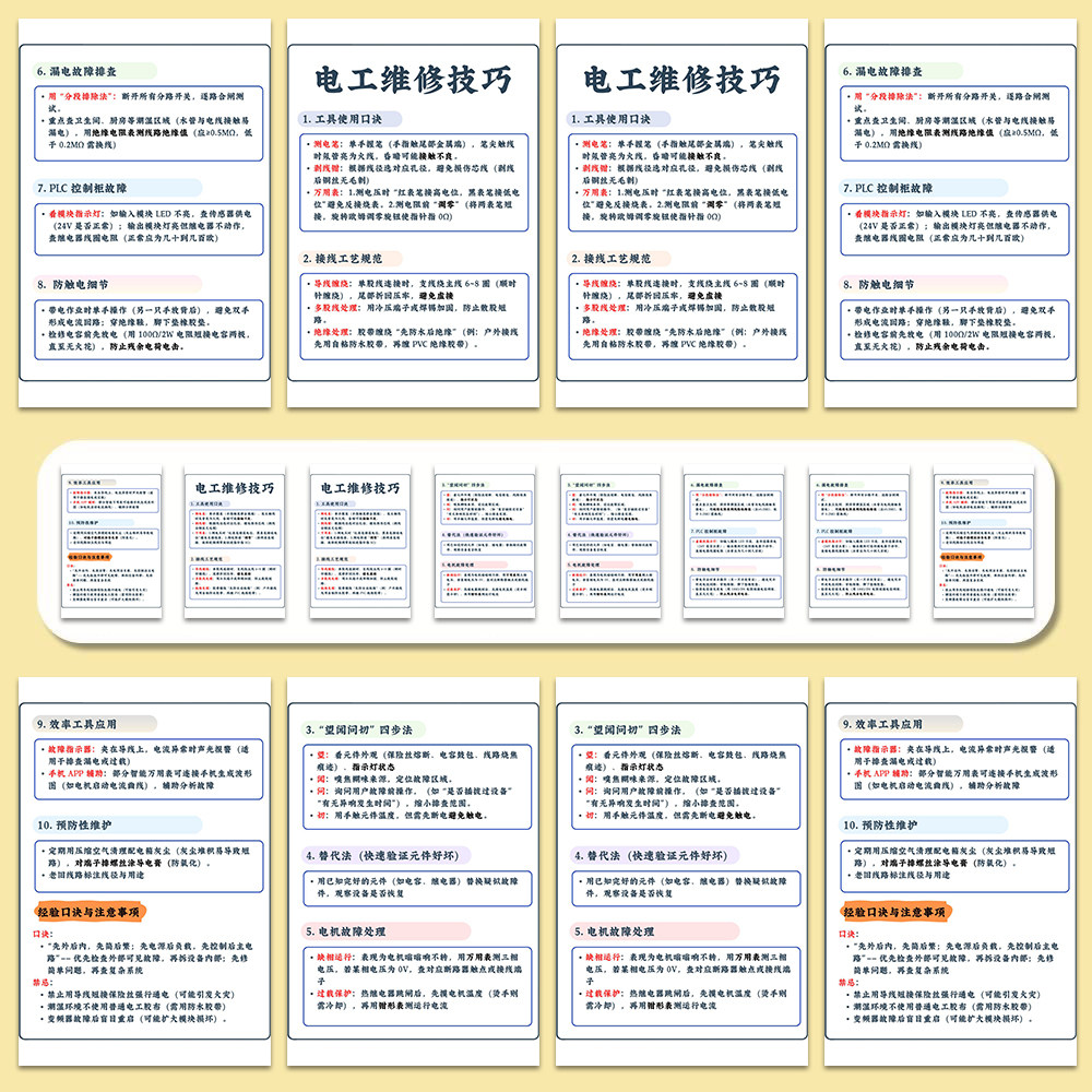 12大张电工维修技巧贴画电气电工知识家装水电电力科普便携墙面贴