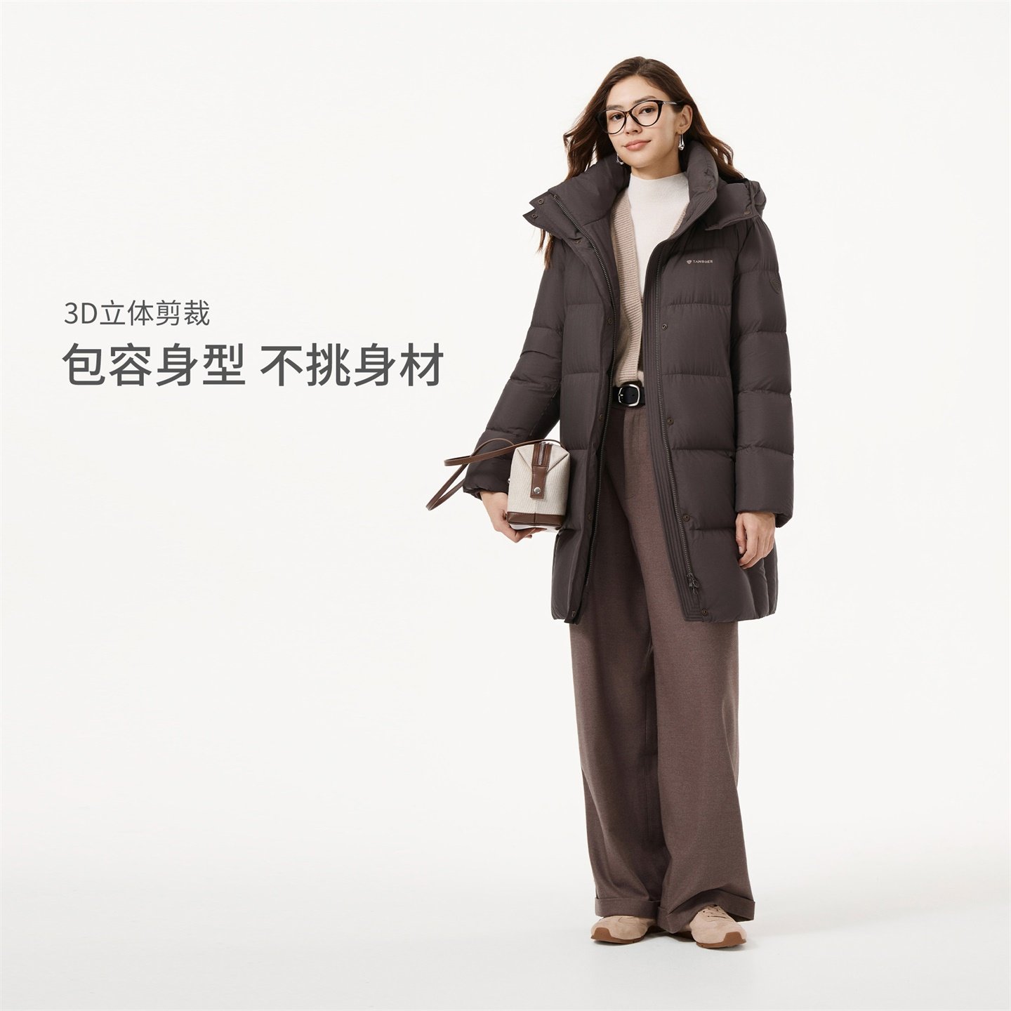 坦博尔25年冬季新款妈妈款羽绒服女士中长款加厚可脱卸帽保暖外套