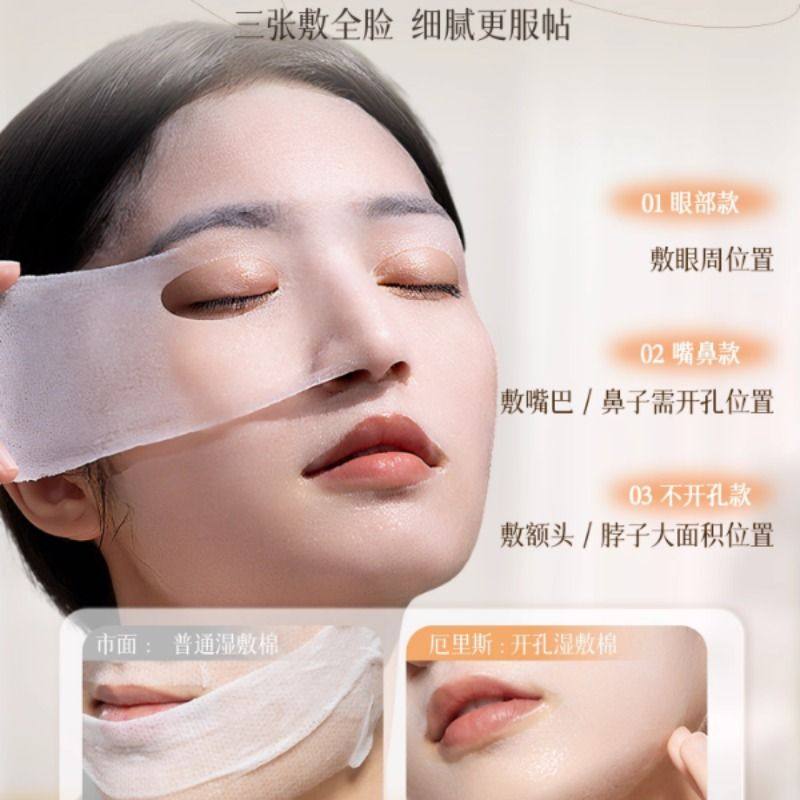 100%全棉三合一湿敷棉医美级敷脸专用开孔式可拉伸脸部面膜卸妆棉
