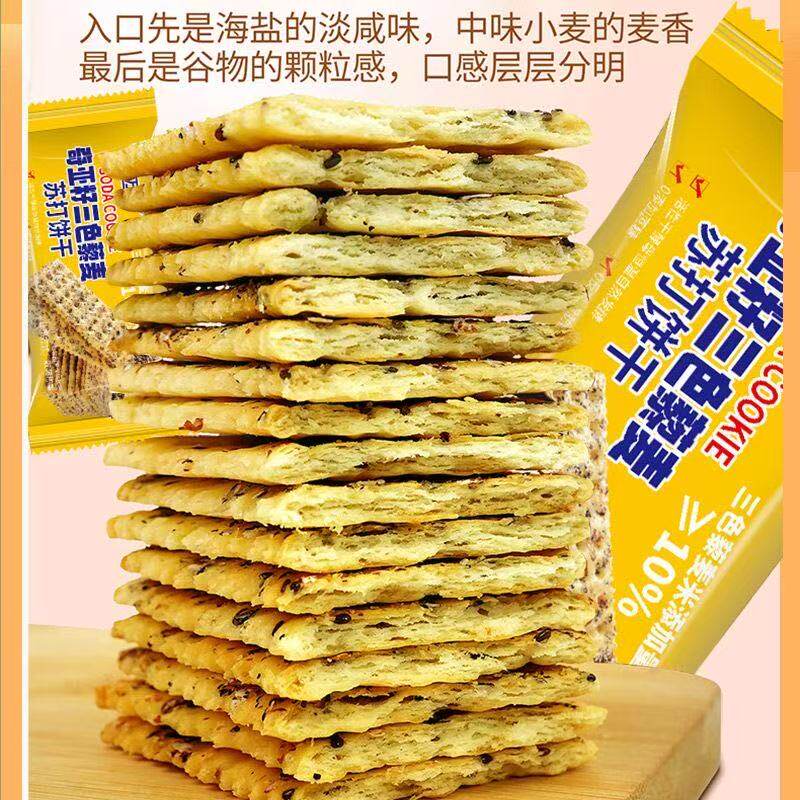 奇亚籽三色藜麦苏打饼干无加蔗糖酥脆咸味宿舍解馋小零食独立包装