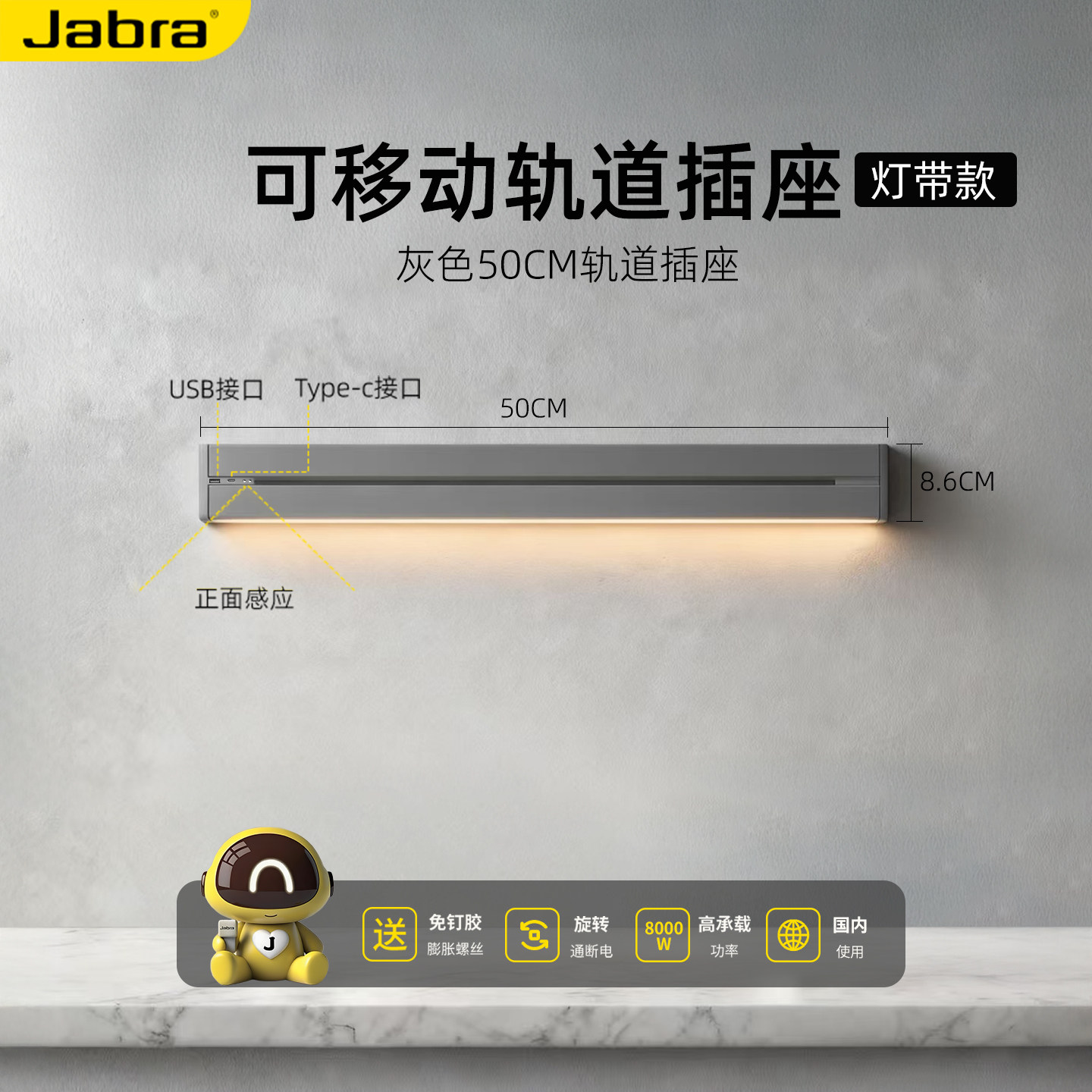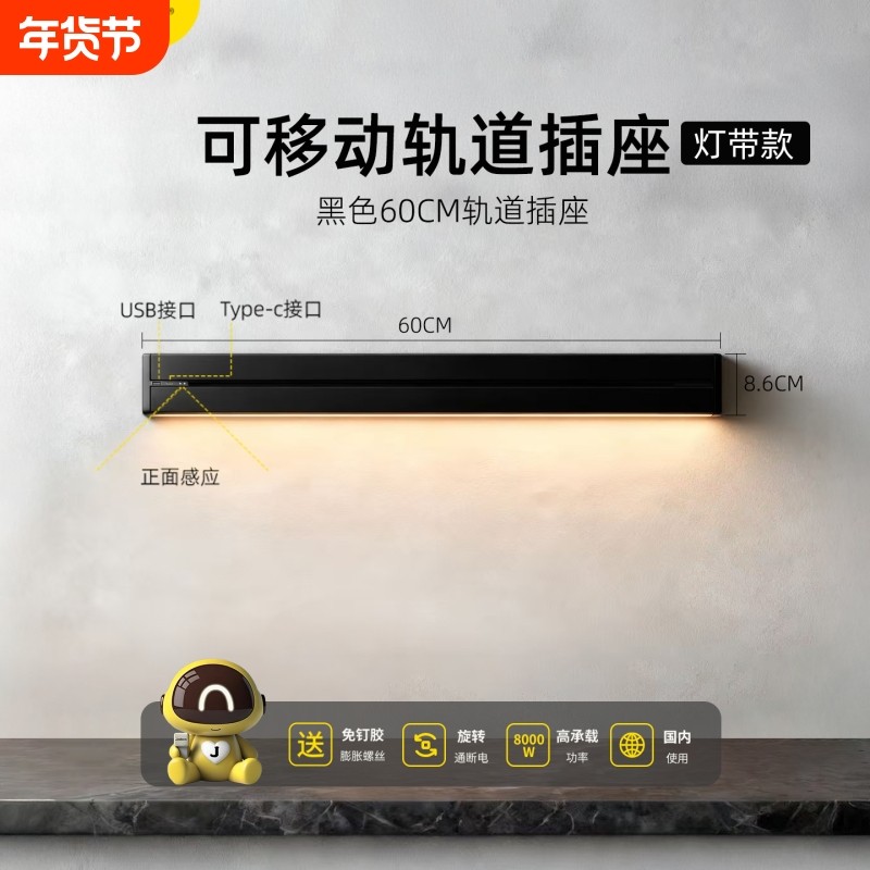 可移动轨道插座智能电力滑轨带感应灯大功率电源插座扩展插板排插