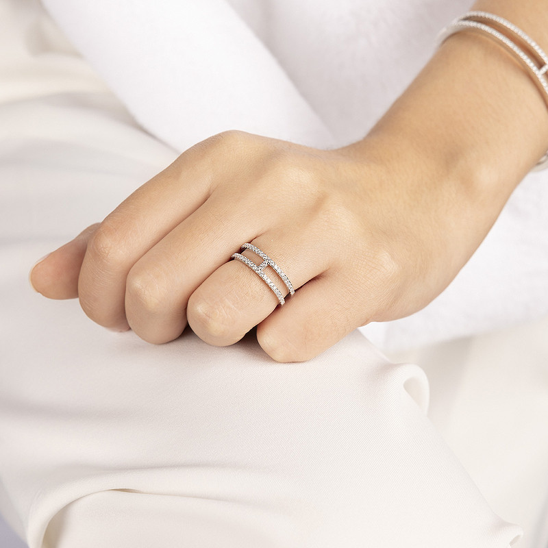 [杨紫同款]APM Monaco密镶双层戒指几何简约指环送人生日圣诞礼物