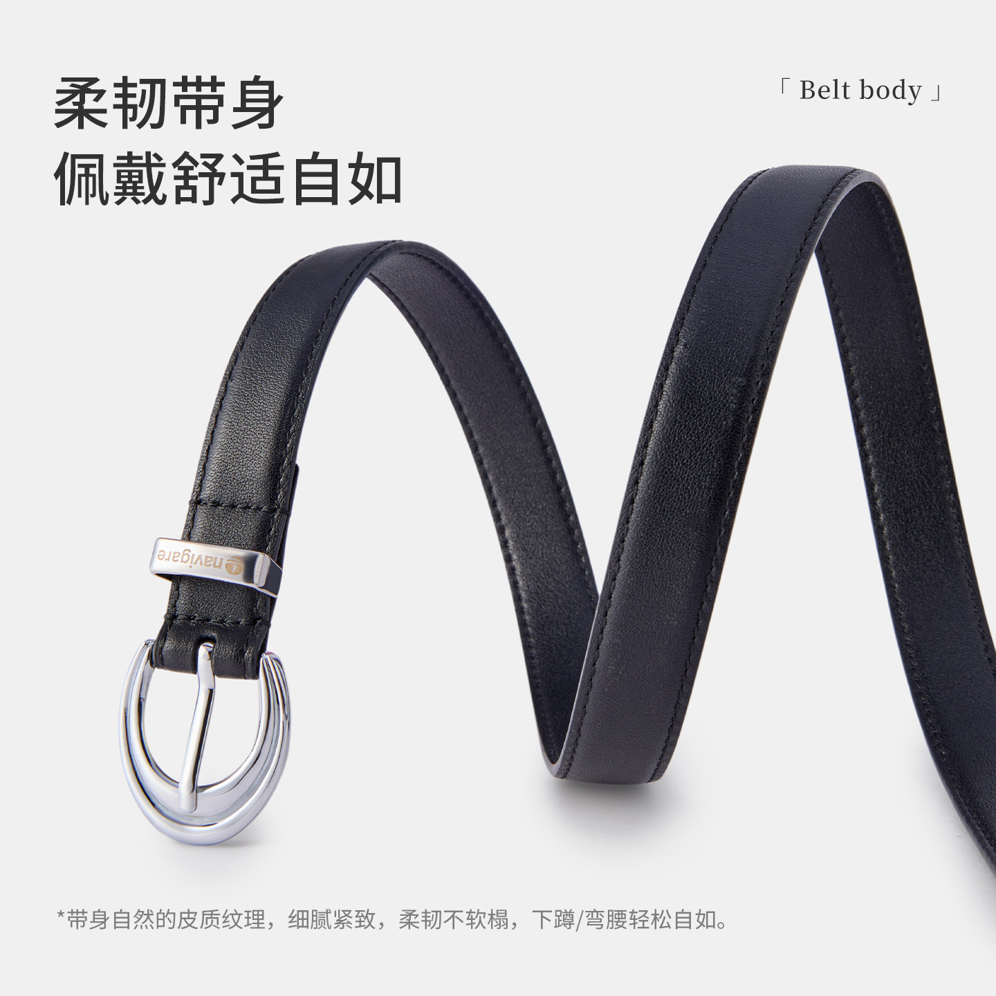 Navigare意大利小帆船黑色经典牛皮皮带女新款休闲百搭合金扣腰带