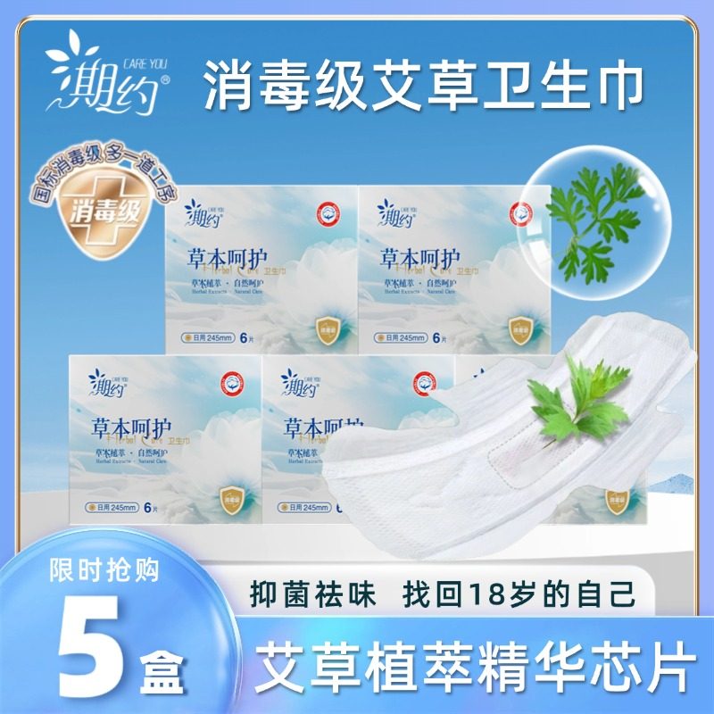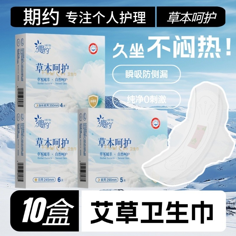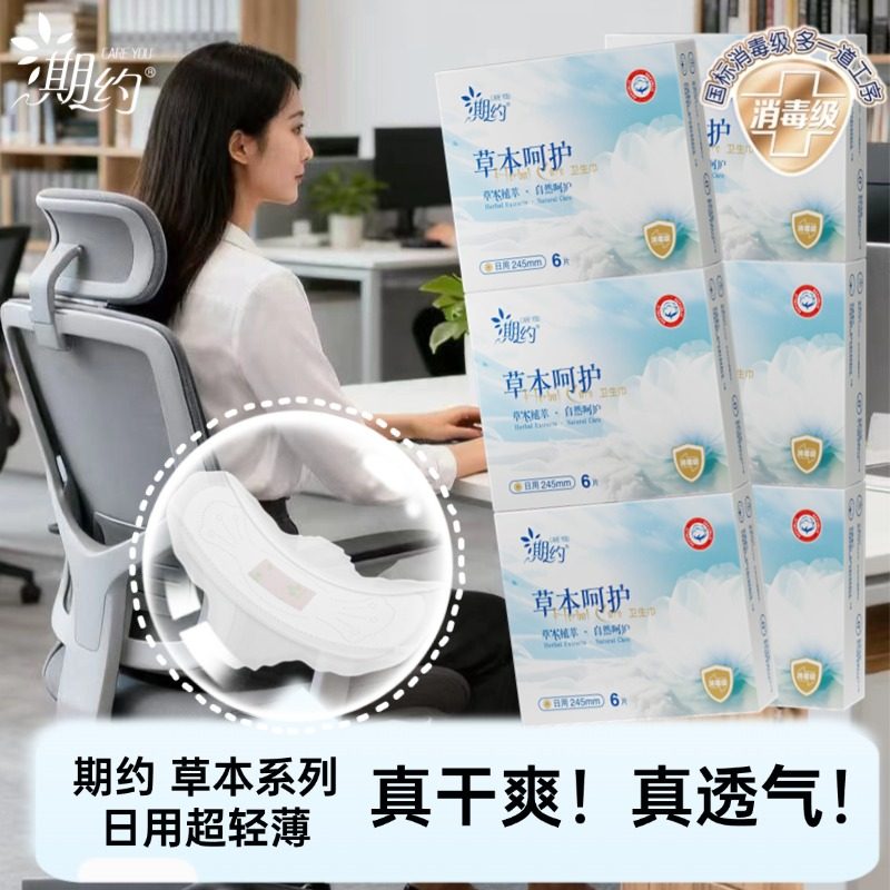 草本卫生巾超薄透气日夜用加长护垫亲肤干爽日用医护级抑菌