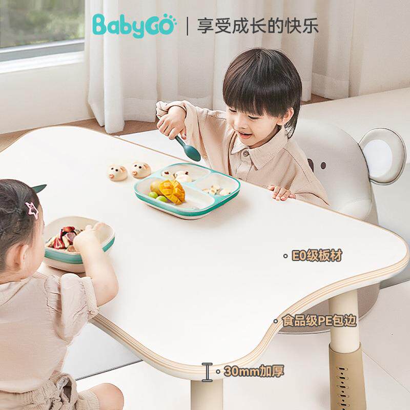babygo月牙桌儿童桌宝宝可升降花生桌婴幼儿园学习小书桌椅英奇
