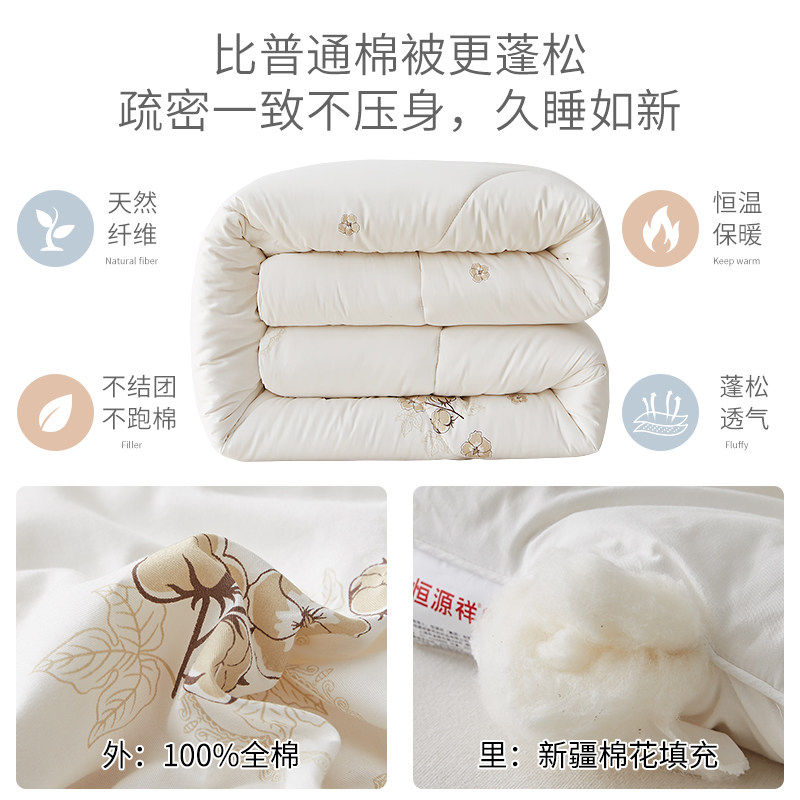 恒源祥新疆棉花被子冬被全棉加厚保暖棉被被芯冬季纯棉花春秋被褥