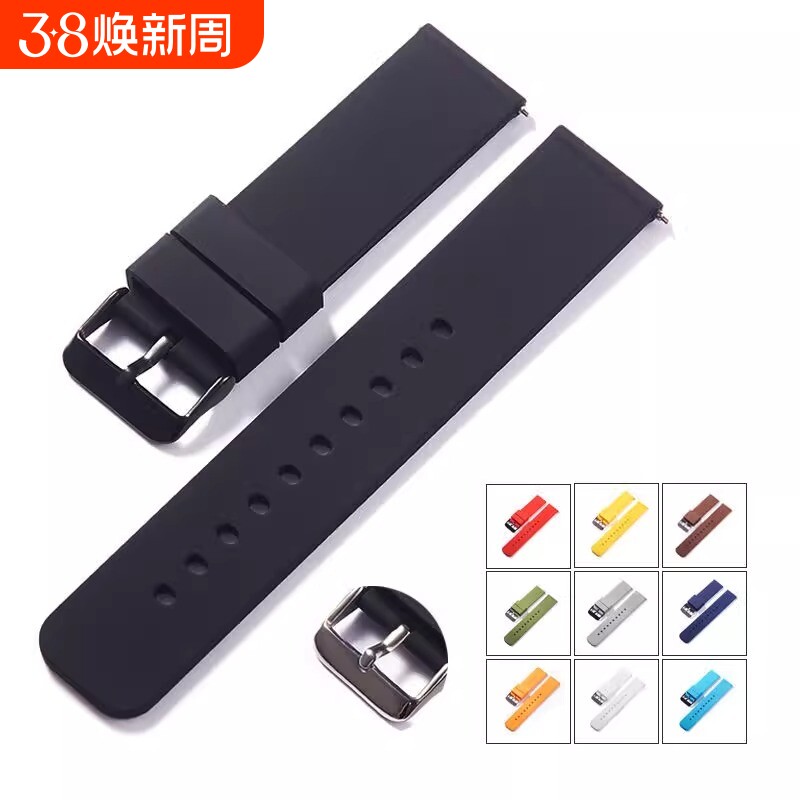 手表带适用三星/华为/Haylou/小米16/18/20/22mm通用平口硅胶表带
