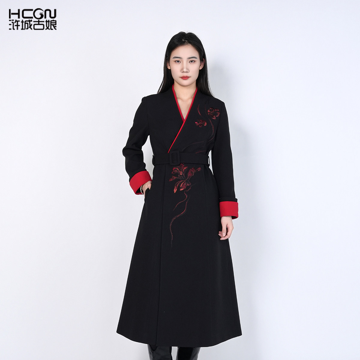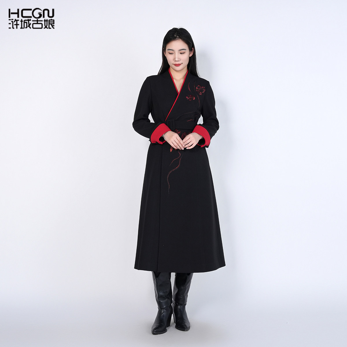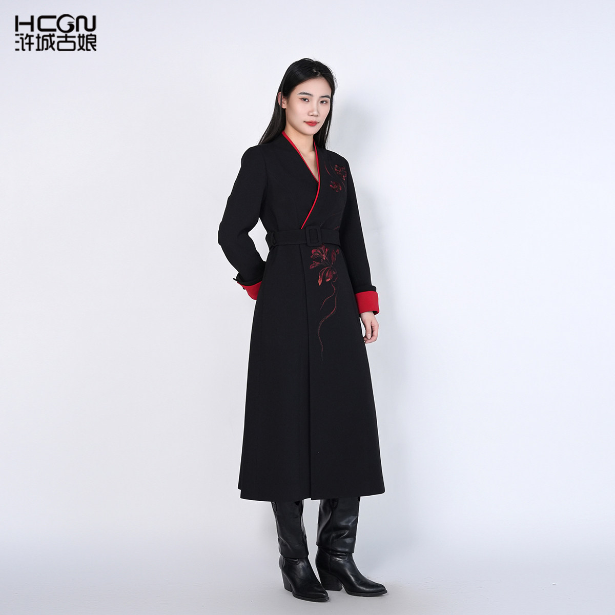 浒城古娘春季新款女装精致刺绣高级感新中式国风战袍连衣裙女春秋