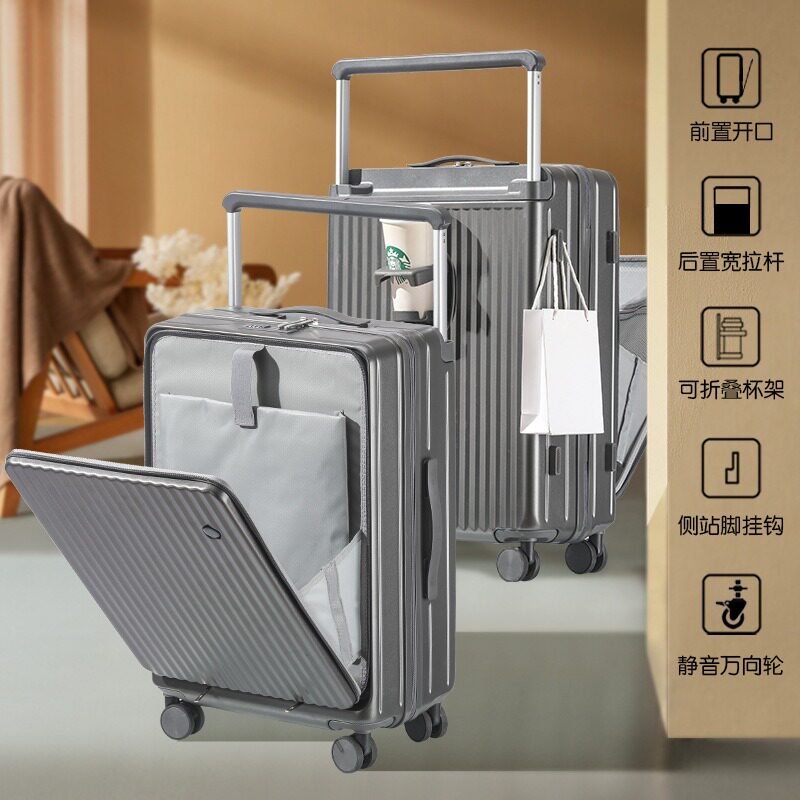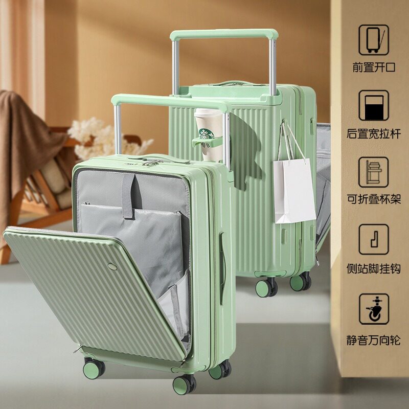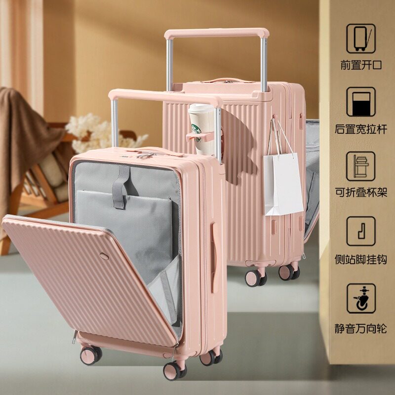 新款前开盖行李箱26寸20抗摔宽拉杆箱旅行箱皮箱女静音前置大容量