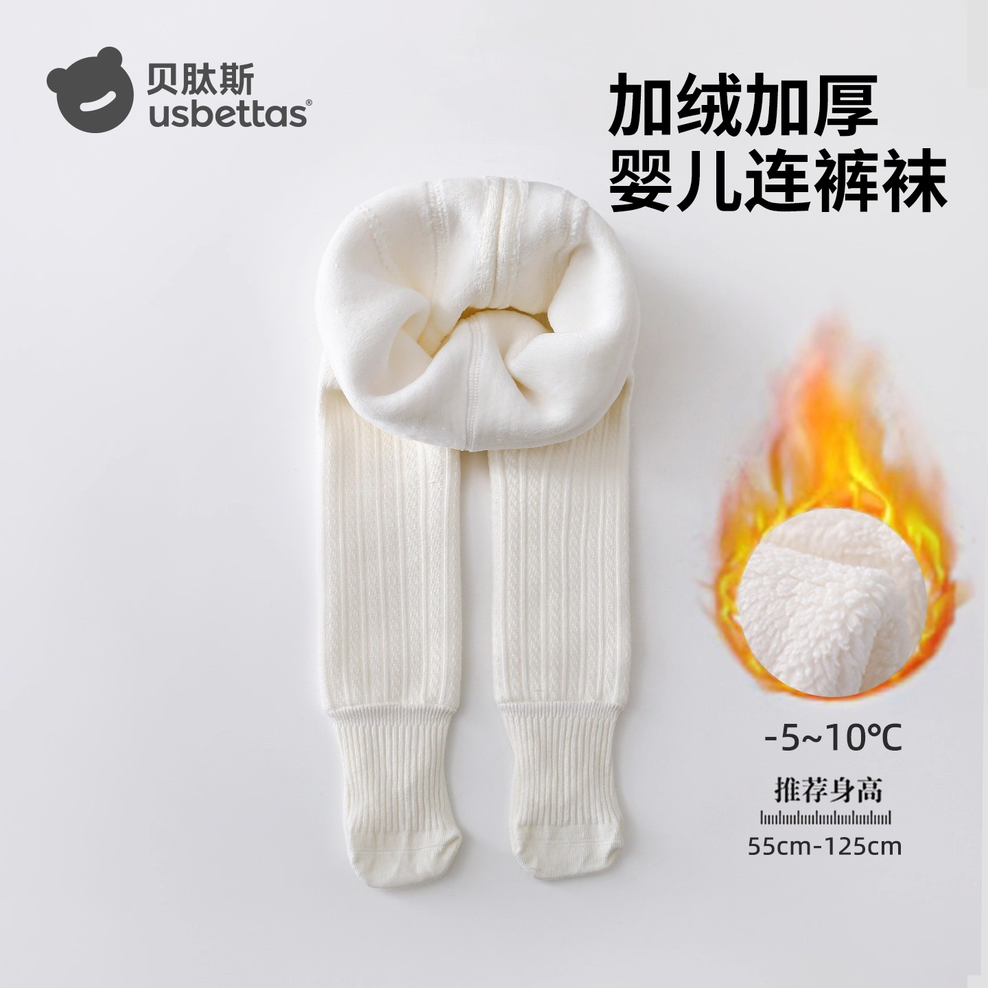 贝肽斯宝宝打底裤冬加厚婴儿连裤袜加绒女童宝宝白色裤袜秋冬保暖