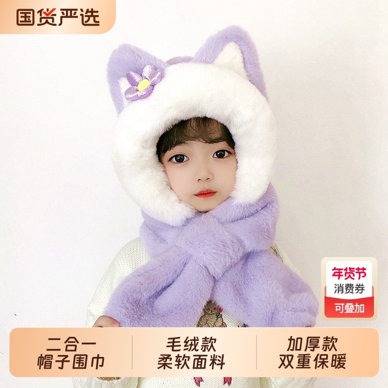 儿童冬季帽子围脖一体帽两件套婴儿可爱毛绒男女童宝宝保暖护耳厚