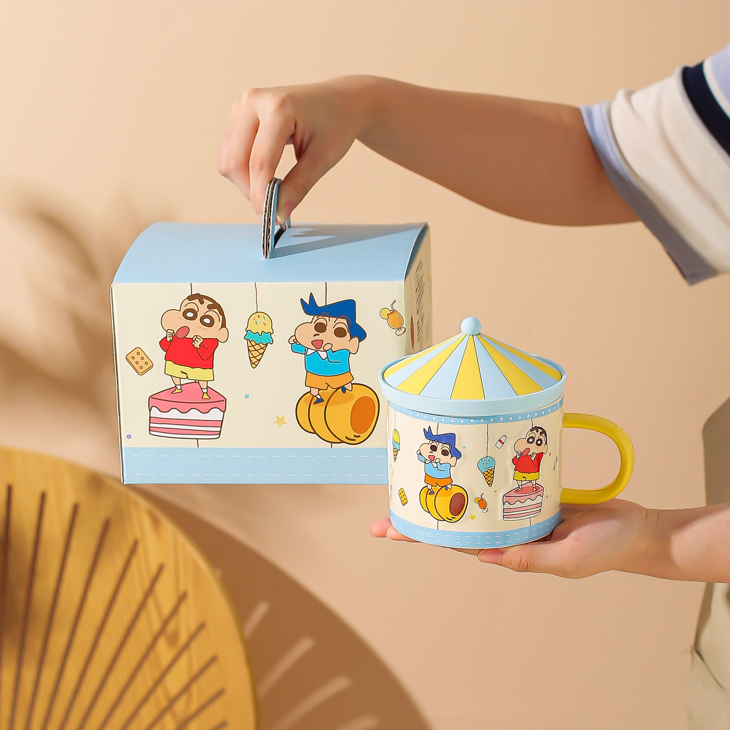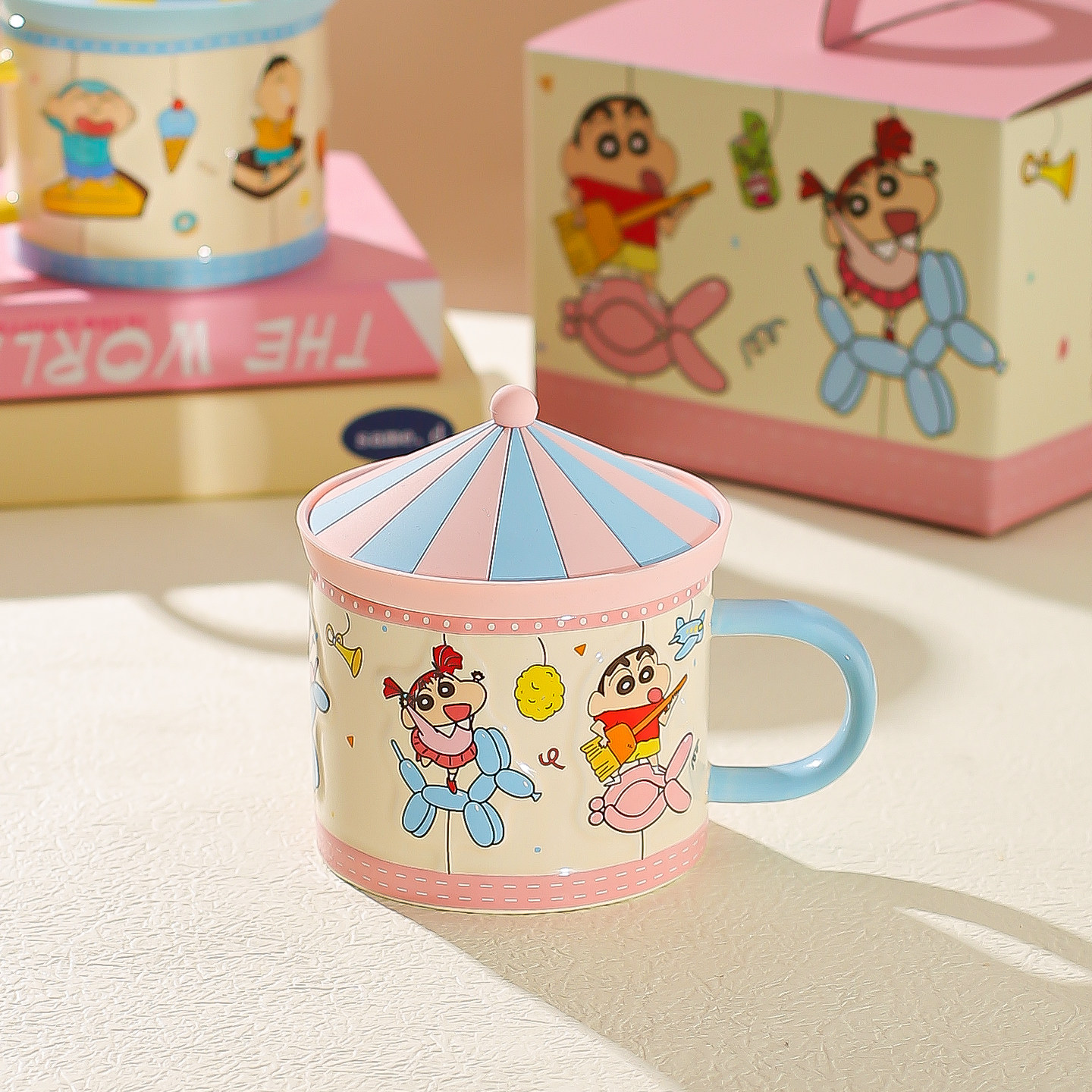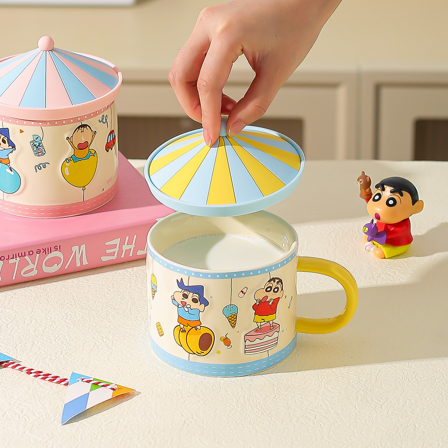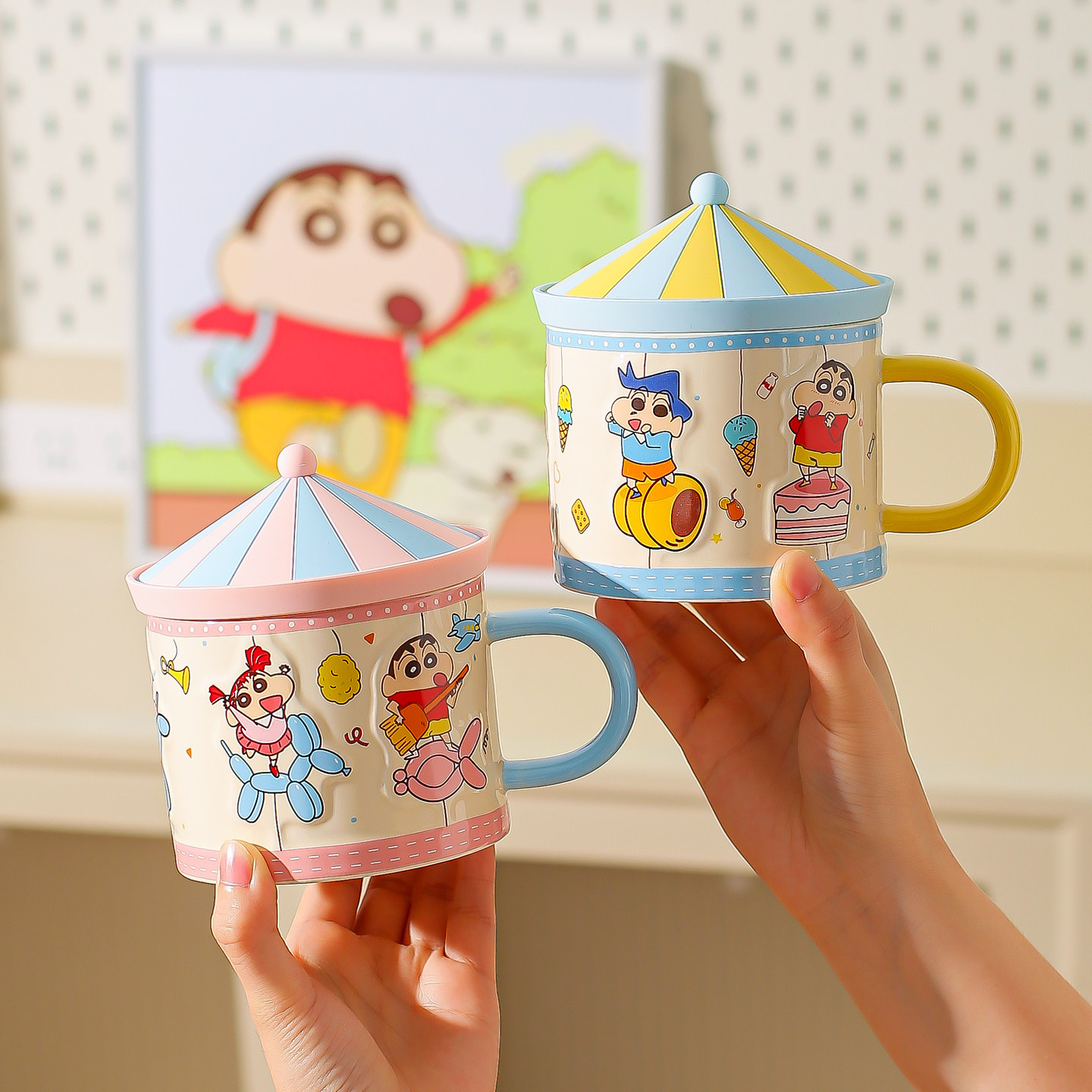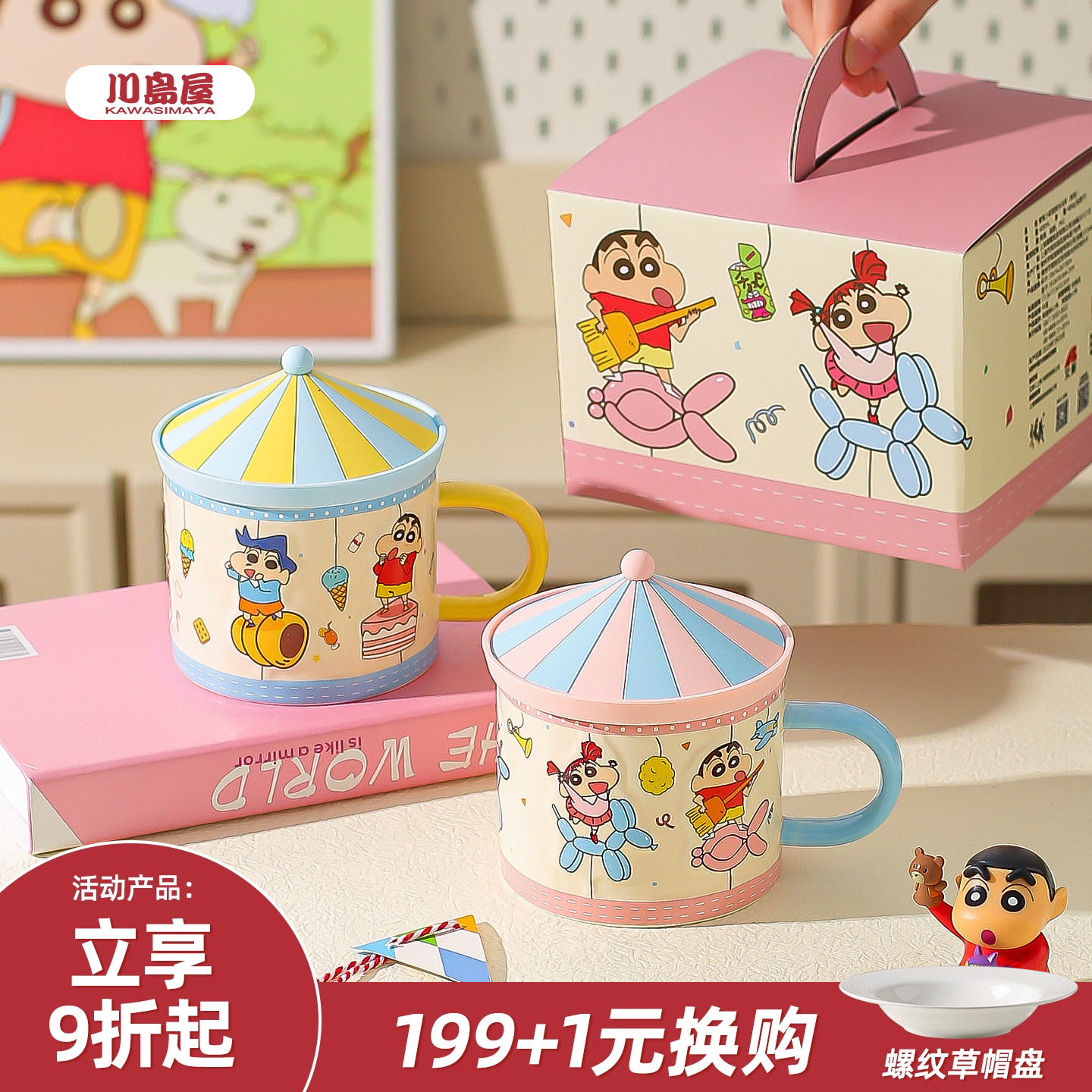 川岛屋蜡笔小新马克杯陶瓷杯子家用喝水杯带盖高颜值生日礼物女生